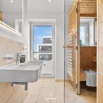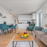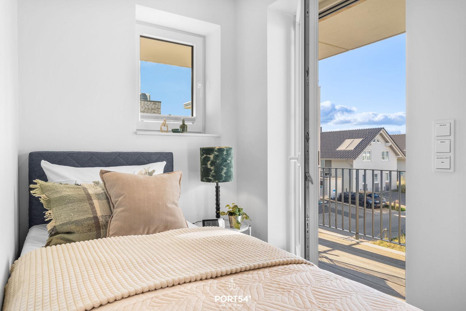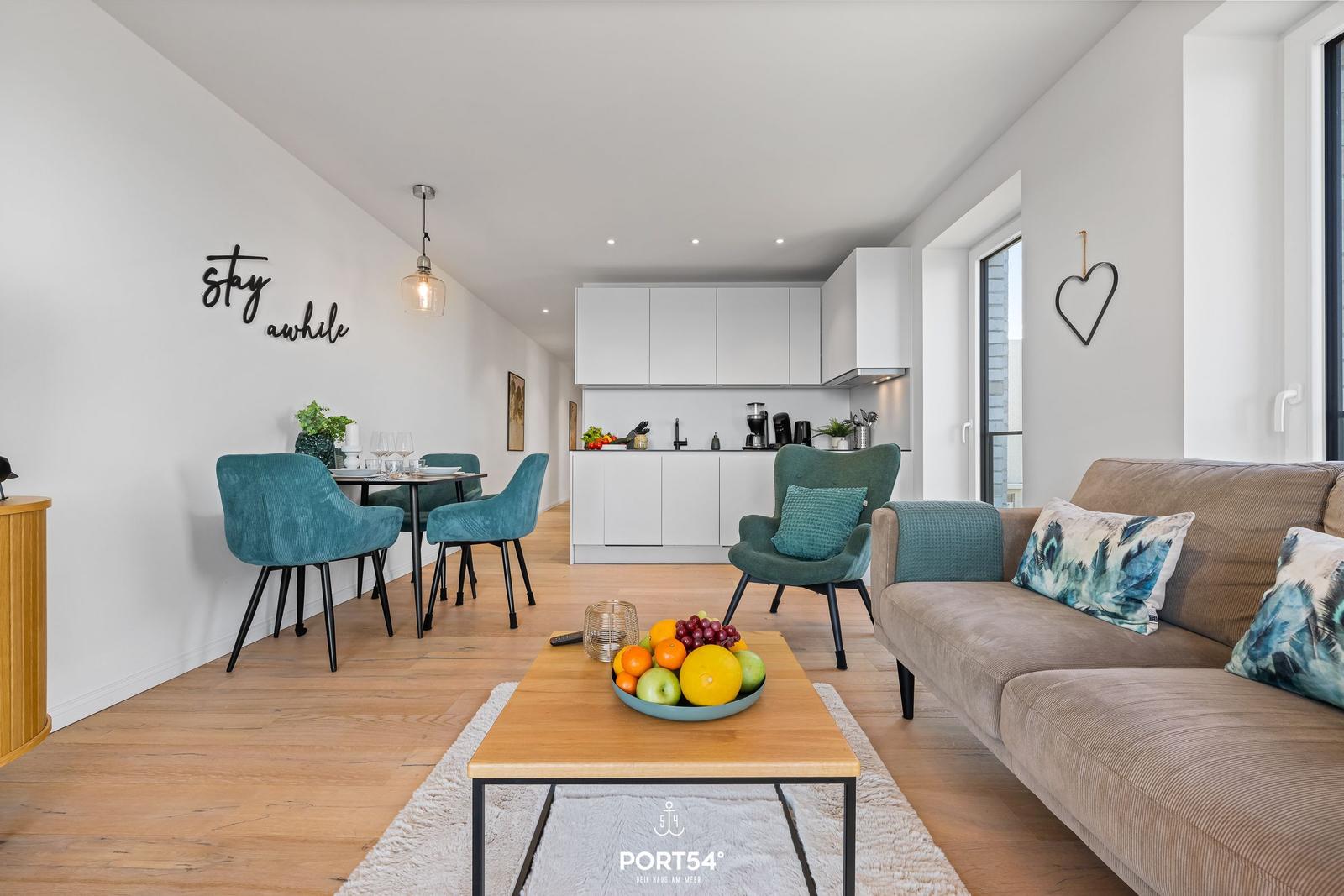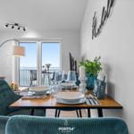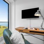 Die Ferienwohnung „Strandfeder“ erstreckt sich über 60 m² und bietet Platz für bis zu 3 Personen. Sie befindet sich im 1. Obergeschoss, nur 250 m vom Strand entfernt. Der lichtdurchflutete Wohnbereich, ausgestattet mit eleganter Fußbodenheizung, verfügt über bodentiefe Fenster und ein gemütliches Sofa, das zur Entspannung einlädt. Die voll ausgestattete Küche ermöglicht das Zubereiten kulinarischer Köstlichkeiten. Es gibt zwei Schlafzimmer: eines mit einem komfortablen Doppel-Boxspringbett und eines mit einem Einzelbett, beide mit eigenem TV. Das Badezimmer bietet eine großzügige, barrierefreie Dusche sowie eine finnische Sauna. Darüber hinaus stehen zwei Balkone zur Verfügung, die einen beeindruckenden Blick auf die Ostsee bieten. In der Anlage sind Gemeinschaftseinrichtungen vorhanden, wie eine E-Ladestation für Elektroautos und Parkplätze.