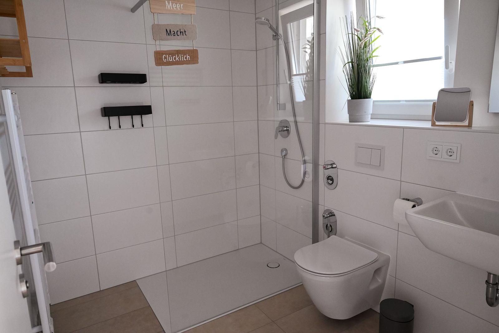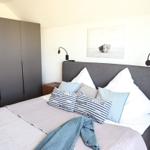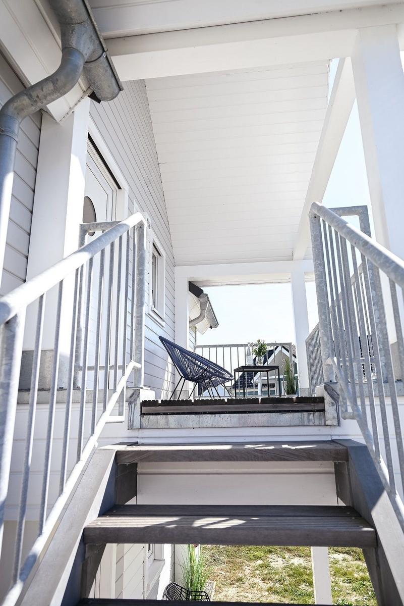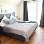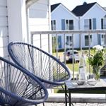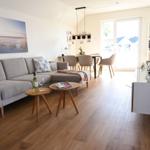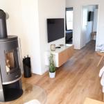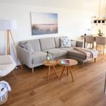 Die Ferienwohnung "Salt 'n' Sea" im Obergeschoss besticht durch helle, großzügige Räume und stilvolle Ausstattung. Die komplett eingerichtete Küche lädt zum gemeinsamen Kochen ein. Das einladende Wohn- und Esszimmer verfügt über ein komfortables Sofa, einen kuscheligen Sessel und einen Smart TV sowie einen Kamin, der in kälteren Monaten für besondere Gemütlichkeit sorgt. Zwei Balkone, jeweils mit stilvollen Outdoormöbeln, stehen zur Verfügung.
