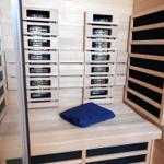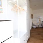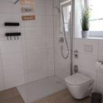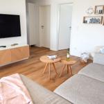 Die beiden Schlafzimmer bieten flexible Schlafmöglichkeiten: eines mit Boxspringbett (1,80 × 2,00 m) und das andere mit einem Doppelbett (1,60 × 2,00 m) und einem Einzelbett (0,80 × 2,00 m), jeweils mit Smart TV. Ein modernes Badezimmer mit Fenster, Handtuchheizkörper und Infrarot-Sauna sorgt für zusätzlichen Komfort. Ein Parkplatz vor der Wohnung und ein abschließbarer Schuppen für Fahrräder runden das Angebot ab.