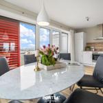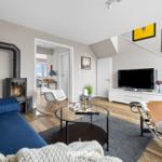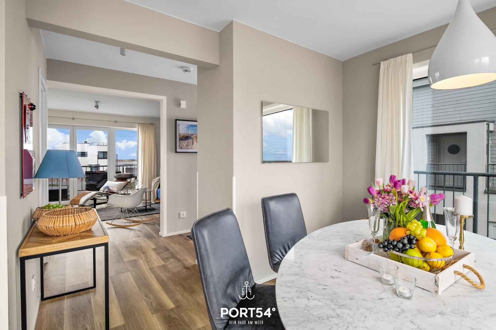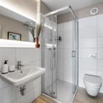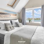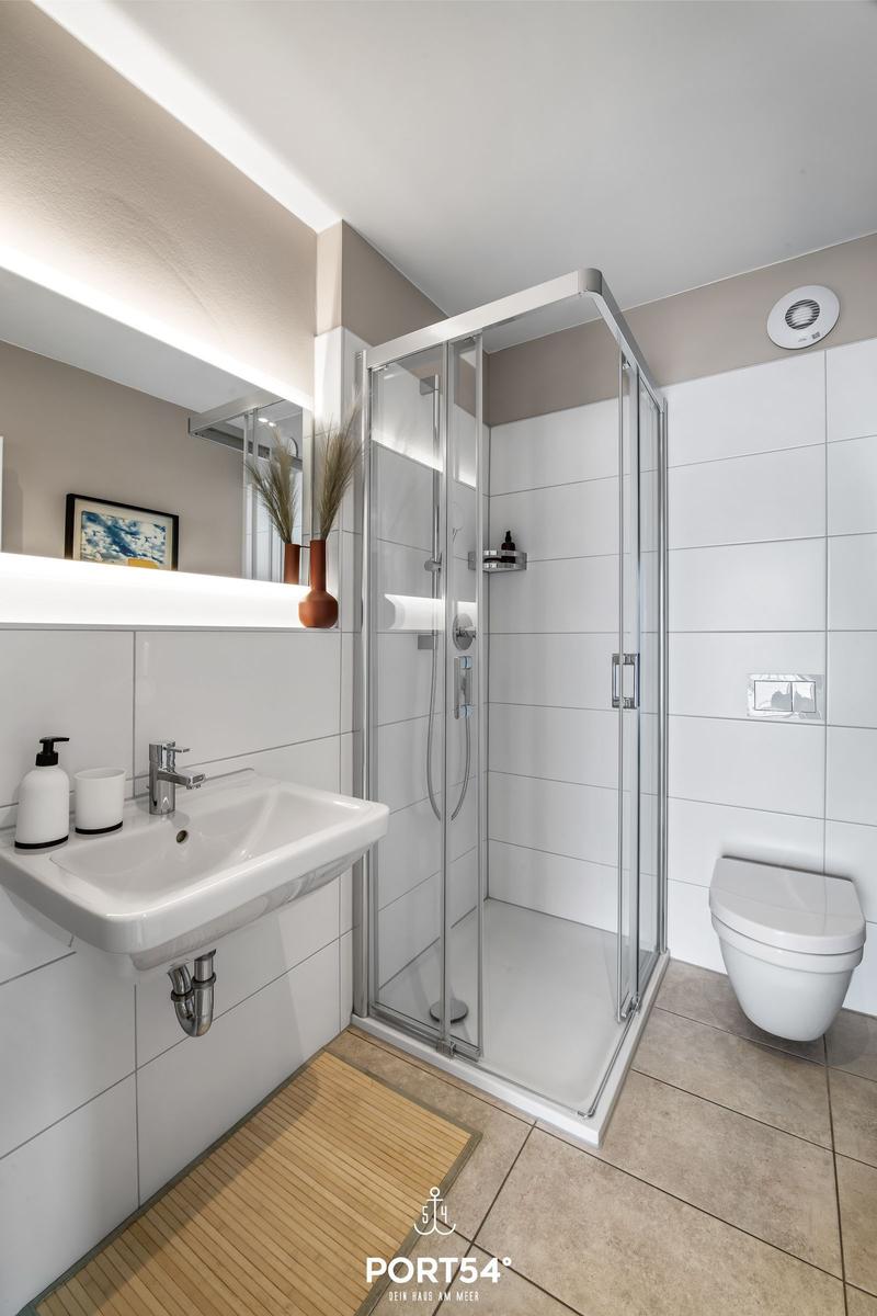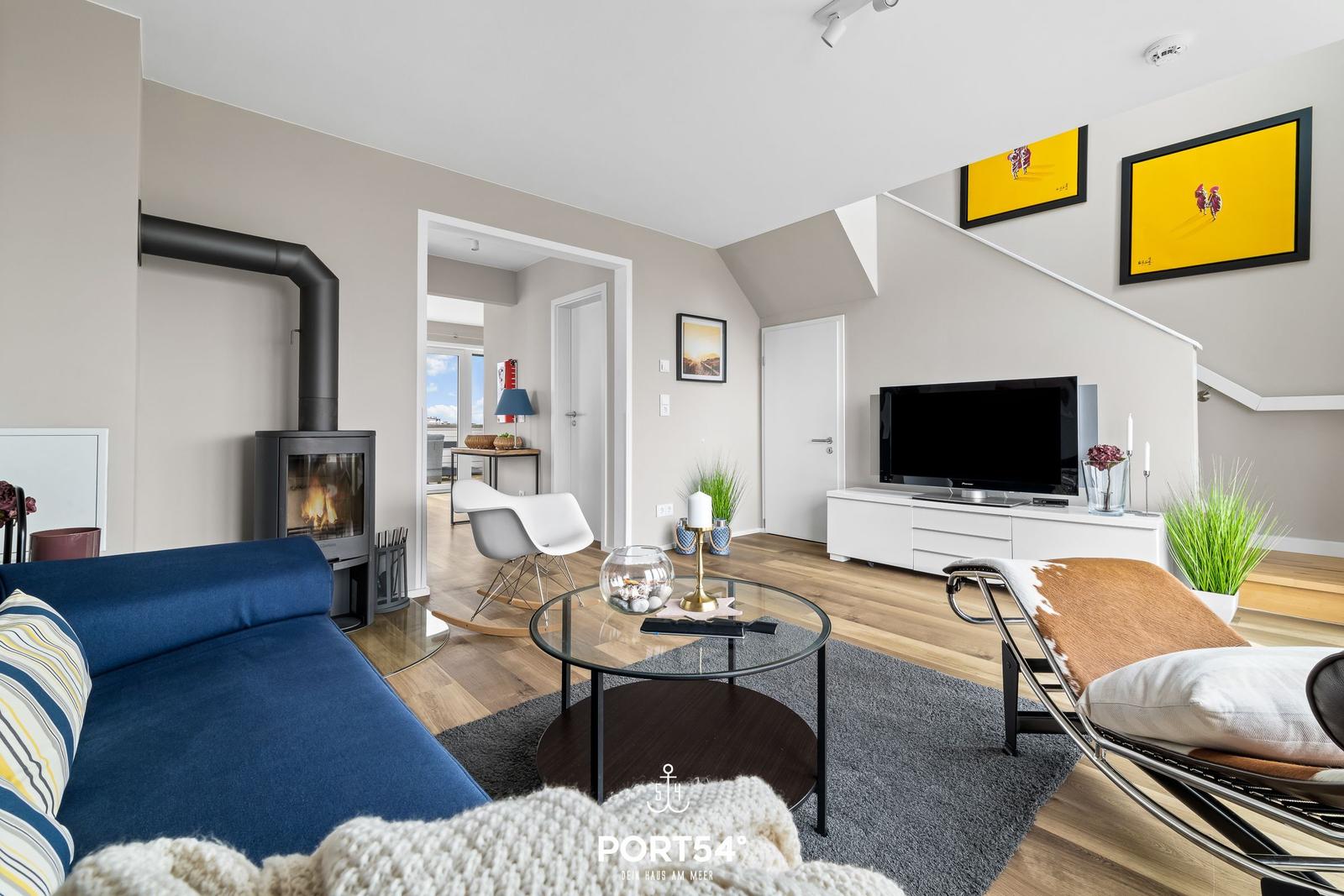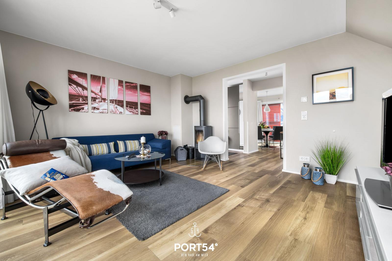 Die Ferienwohnung „BlueLounge“ in Olpenitz bietet auf 97 m² Platz für bis zu vier Personen und überzeugt mit einem stilvollen Wohnkonzept auf zwei Etagen. Zwei separate Schlafzimmer, eines mit einem Boxspringbett (180 × 200 cm) und das andere mit zwei Einzelbetten (je 100 × 200 cm), sorgen für erholsamen Schlaf. Jedes Schlafzimmer verfügt über einen Kleiderschrank, einen TV und Verdunkelungsmöglichkeiten. Die hochwertige offene Küche ist mit Induktionsherd, Spülmaschine, Kaffeemaschine und weiteren Geräten ausgestattet. Im großzügigen Wohnbereich fördern Kaminofen und moderne Unterhaltungstechnik Gemütlichkeit. Die beiden Badezimmer setzen den hohen Standard fort, mit einem Hauptbad mit Dusche und Whirlwanne sowie einem zweiten Duschbad. Eine Infrarotkabine bietet Entspannung nach dem Strandbesuch. Die Fußbodenheizung sorgt ganzjährig für ein angenehmes Raumklima. WLAN ist vorhanden, und ein Privatparkplatz steht zur Verfügung.