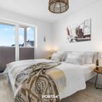 Die Ferienwohnung „Landungsbrücke 28“ erstreckt sich über 82 m² und bietet Platz für bis zu vier Personen. Der lichtdurchflutete Wohn- und Essbereich ist mit einem großen Esstisch, Sofa, Sessel und Fernseher ausgestattet. Die offene Küche beinhaltet einen Induktionsherd, Geschirrspüler und weitere Küchenutensilien. Zwei separate Schlafzimmer verfügen über Doppel-Boxspringbetten (180 × 200 cm), einen eigenen Fernseher, Kleiderschrank und Verdunkelungsmöglichkeiten. Das moderne Badezimmer ist mit einer Whirlwanne, Kosmetikspiegel und Fußbodenheizung ausgestattet. Eine Infrarotsauna sorgt für Entspannung. Kostenfreies WLAN und eine Waschmaschine sowie ein Trockner stehen zur Verfügung. Eine Terrasse mit Gartenmöbeln ergänzt den Komfort. Bitte beachten, dass einige Ausstattungen eventuell gemeinschaftlich genutzt werden müssen. Die Wohnung überzeugt durch stilvolles Wohnen und hochwertige Ausstattung – ideal für Erholungssuchende an der Ostsee.