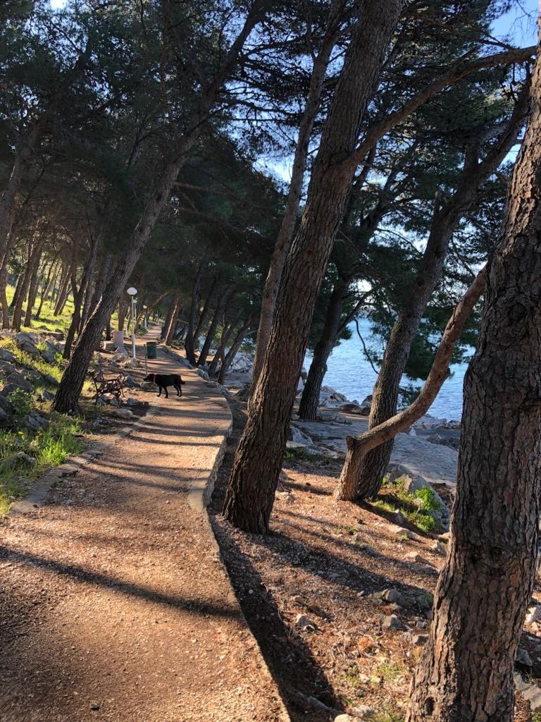 Strand über Fußweg (Treppen) oder über Strasse erreichbar, Tiere erlaubt (Strand ist unterteilt)