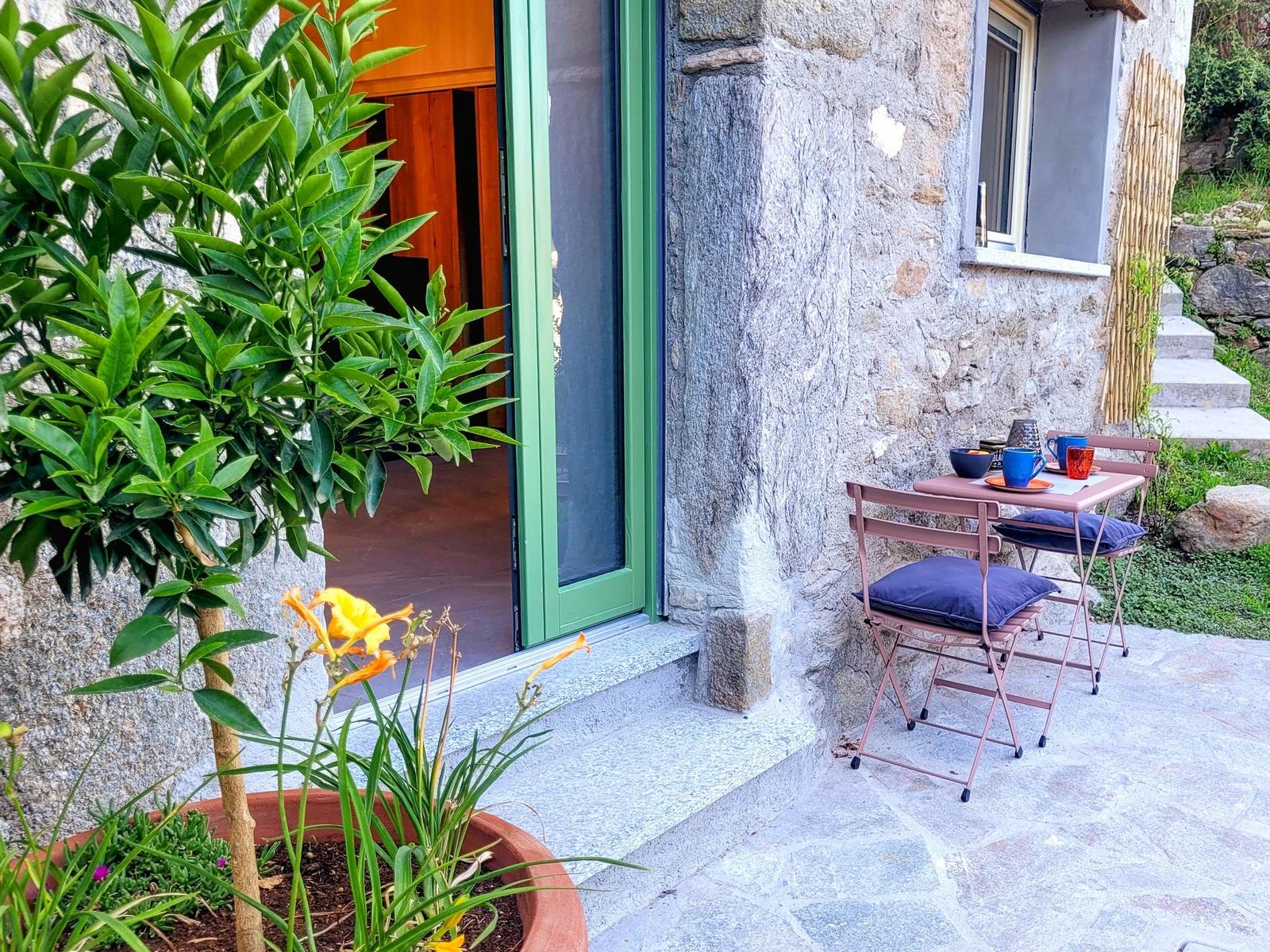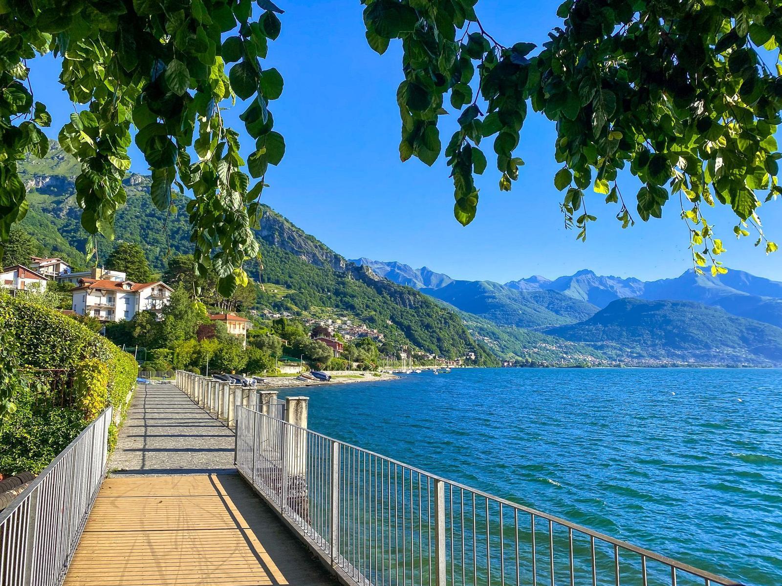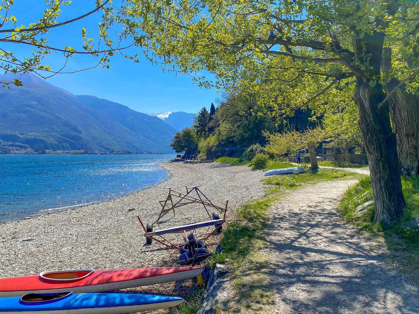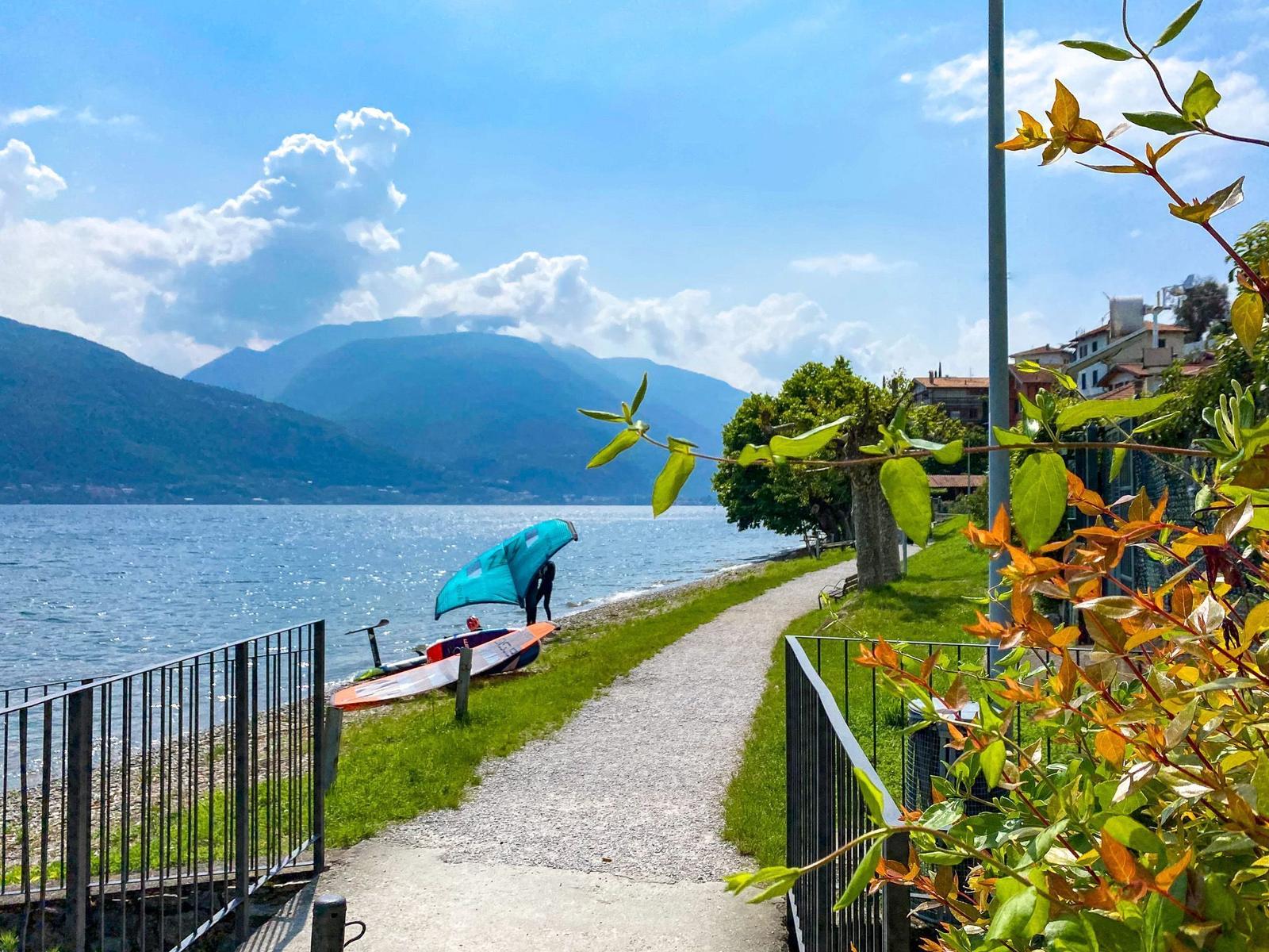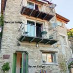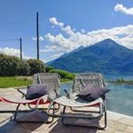 Die Sunrise Lodge bietet einen einladenden Außenbereich in einer malerischen Lage am Comer See. Die offene Natursteinterrasse vor dem Eingang der Ferienwohnung ist mit einem Esstisch und Liegestühlen ausgestattet, ideal für entspannte Stunden im Freien. Ein Gemeinschaftspool, der einen atemberaubenden Blick auf den See und die umliegenden Berge bietet, befindet sich oberhalb der Unterkunft und ist wetterabhängig vom 01. Juni bis zum 30. September geöffnet. Hier stehen zudem Liegestühle und ein Poolhaus mit Dusche, Waschbecken und WC zur Verfügung. Die Siedlung ist von üppiger Natur umgeben und lädt zu Aktivitäten wie Wandern, Schwimmen und Wassersport ein. Familien sollten beachten, dass die Treppen in der Anlage eine erhöhte Aufsicht bei Kindern erfordern.