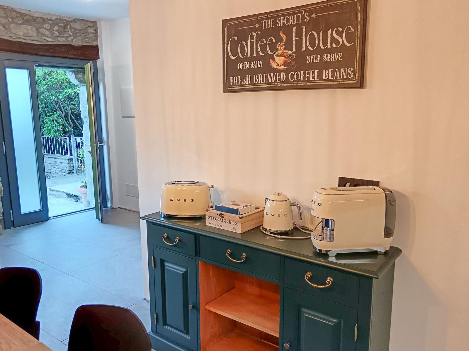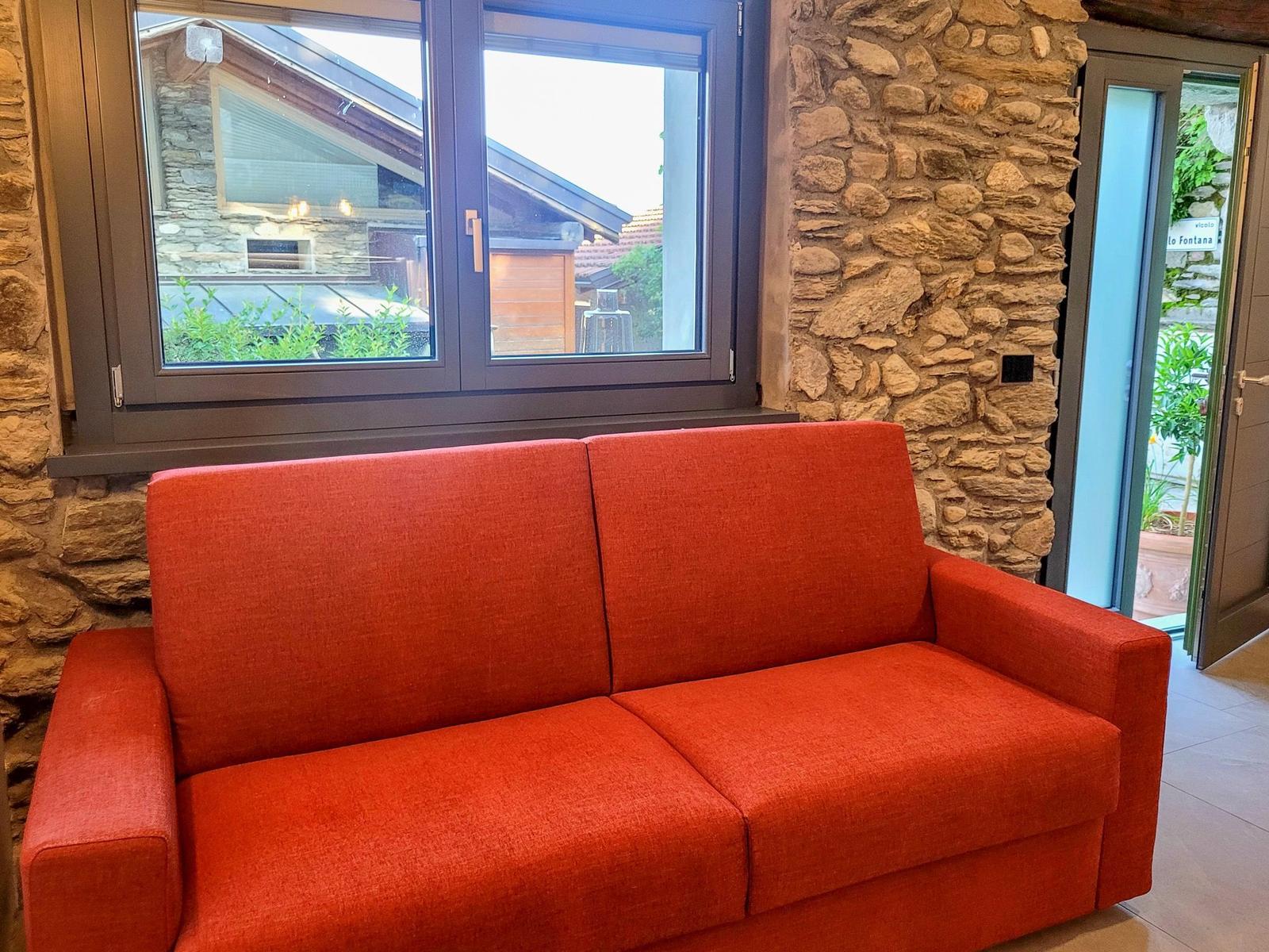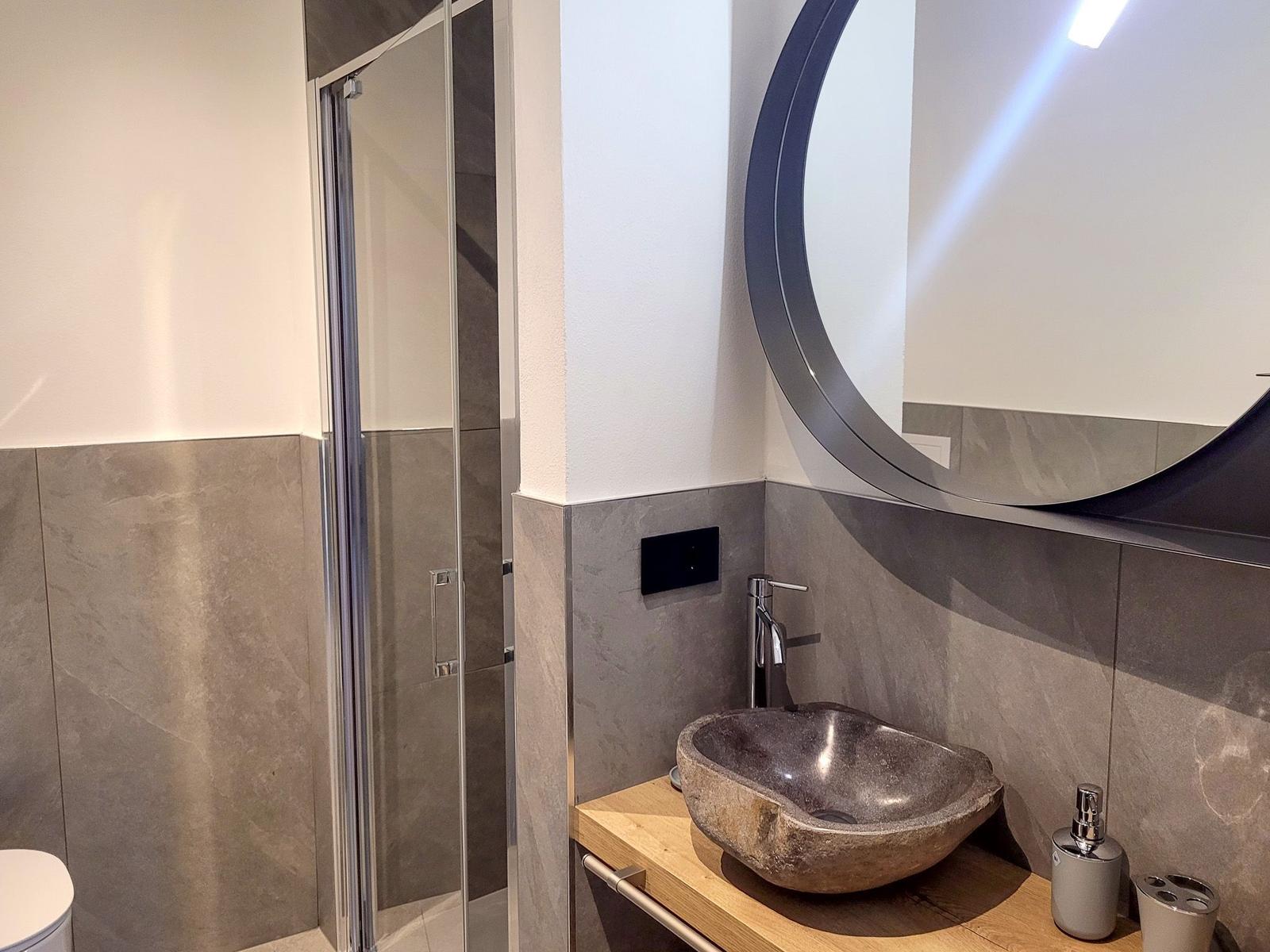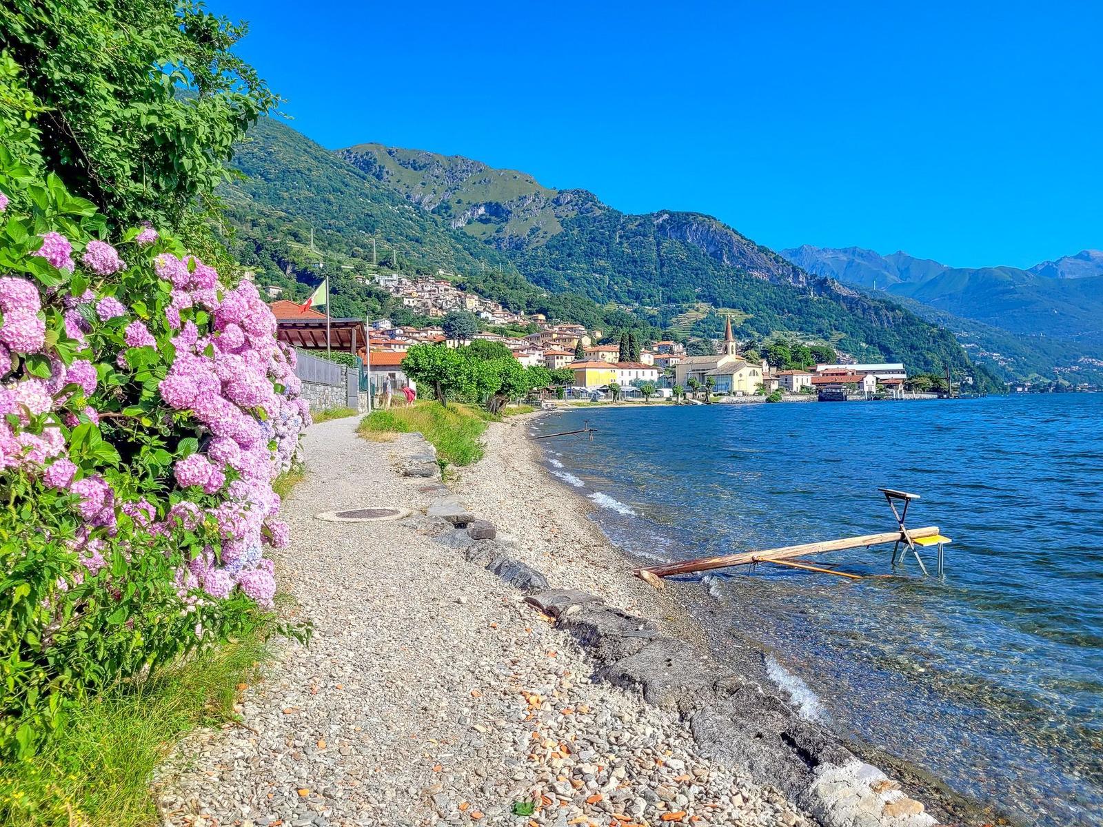 Die Sunrise Lodge bietet einen einladenden Außenbereich in einer malerischen Lage am Comer See. Die offene Natursteinterrasse vor dem Eingang der Ferienwohnung ist mit einem Esstisch und Liegestühlen ausgestattet, ideal für entspannte Stunden im Freien. Ein Gemeinschaftspool, der einen atemberaubenden Blick auf den See und die umliegenden Berge bietet, befindet sich oberhalb der Unterkunft und ist wetterabhängig vom 01. Juni bis zum 30. September geöffnet. Hier stehen zudem Liegestühle und ein Poolhaus mit Dusche, Waschbecken und WC zur Verfügung. Die Siedlung ist von üppiger Natur umgeben und lädt zu Aktivitäten wie Wandern, Schwimmen und Wassersport ein. Familien sollten beachten, dass die Treppen in der Anlage eine erhöhte Aufsicht bei Kindern erfordern.