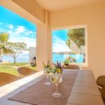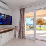 Die 130 m² große Wohnung ist aufgeteilt in ein Wohnzimmer, eine voll ausgestattete Küche mit Essbereich, zwei Schlafzimmer mit Doppelbetten, ein Schlafzimmer mit zwei Einzelbetten und drei Badezimmer mit Duschen. Alle Zimmer sind klimatisiert. Im Wohnzimmer befindet sich ein Schlafsofa für zwei Personen. Zur FeWo gehört eine 25 m² große überdachte Terrasse mit Meerblick, möbliert mit Liegen, Tisch und Stühlen.
