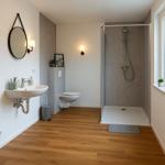 Der Außenbereich der Kapitänskoje ist ebenso komfortabel gestaltet wie die Wohnung selbst. Die Unterkunft verfügt über einen rollstuhlgerechten, schwellenlosen Zugang, der direkt zur Terrasse führt. Hier findest du gemütliche Sitzmöglichkeiten, ideal für entspannte Stunden an der frischen Ostseeluft.
