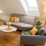 Das Apartment verfügt über ein gemütliches Doppelbett, ein Schlafsofa für eine zusätzliche Person, eine komplett ausgestattete Wohnküche sowie ein modernes Badezimmer. Große Fenster sorgen für viel Tageslicht und einen angenehmen Blick in die maritime Umgebung.