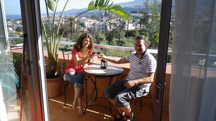 Die schöne Wohnung ist mit hochwertigen und modernen Möbeln ausgestattet. Im Wohnraum gibt es bequeme Polstermöbel mit Couchtisch sowie einen Essplatz. Dort findet sich auch ein großer, moderner Flachbildfernseher. Im Schlafzimmer befindet sich ein Doppelbett 180 x 200 cm, Nachttische mit Leselampen und ein großer Kleiderschrank. Hier findet sich auch der Safe. Die offene Küche ist mit allem ausgestattet und lässt keine Wünsche offen. Das Badezimmer ist mit Toilette, Waschtisch und Dusche ausgestattet. Hier findet sich auch eine Waschmaschine, Föhn, Personenwaage, Hand- und Badetücher. Auf der schönen Terrasse gibt es einen Tisch mit zwei Stühlen sowie zwei Sonnenliegen und eine Markise. Die Terrasse ist liebevoll tropisch bepflanzt und bietet einen schönen Blick auf Orotavatal, Stadt und Atlantik. In der Wohnung gibt es einen Staubsauger, Bügelbrett, Bügeleisen, Wäschetrockner uvm. in der Wohnung finden Sie eine Grundausstattung mit Putzmitteln, Handseife, Toilettenpapier. Zur Begrüßung erwartet Sie eine Flasche Wein und Wasser.