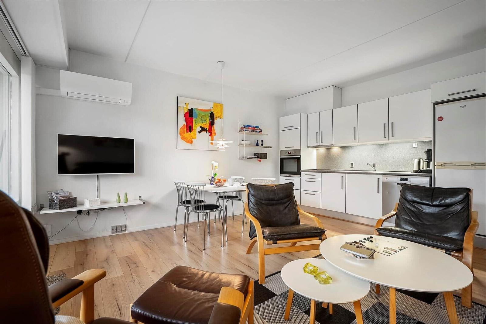 Die Ferienwohnung in Søndervig Strand og By, Westjütland, besticht durch ihre hervorragende Lage. Nur 275 Meter trennen die Gäste vom nächsten Strand, der zum Entspannen und Erholen einlädt. Für Einkäufe steht eine Supermarktmöglichkeit in 370 Metern Entfernung zur Verfügung, was eine bequeme Versorgung garantiert. Die Umgebung bietet zahlreiche Attraktionen, darunter malerische Wanderwege und charmante Küstenorte, die sich ideal für Tagesausflüge eignen. Die Unterkunft ist mit modernen Annehmlichkeiten ausgestattet, darunter eine Spülmaschine und Internetzugang. Die Anreise zur Ferienwohnung erfolgt unkompliziert über die umliegenden Straßen, die eine gute Erreichbarkeit garantieren. Die Wohnung, gelegen auf einem 100 m² großen Grundstück, bietet auf 48 m² Platz für bis zu 4 Erwachsene und ein Haustier, und ist somit der perfekte Rückzugsort für einen erholsamen Urlaub.