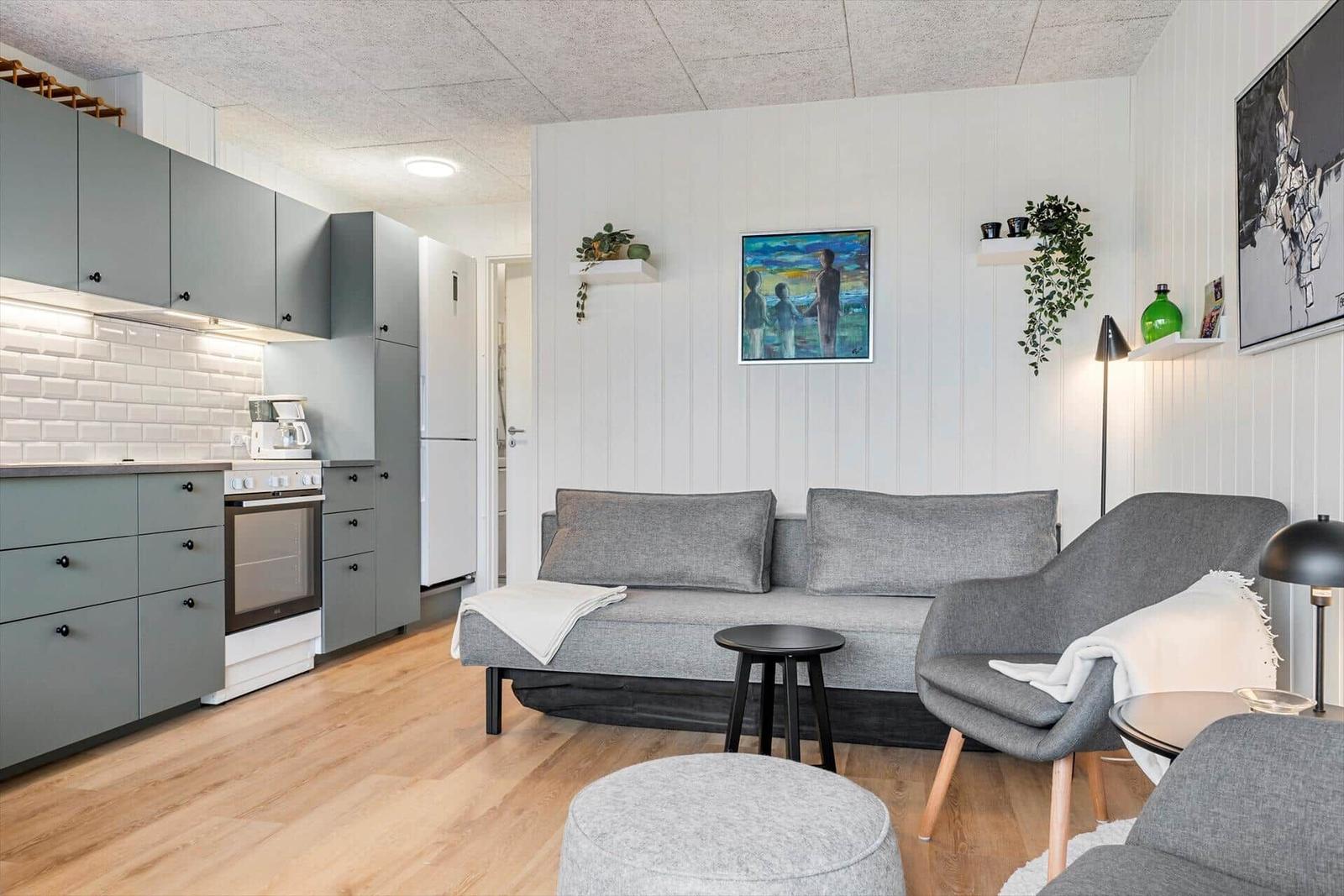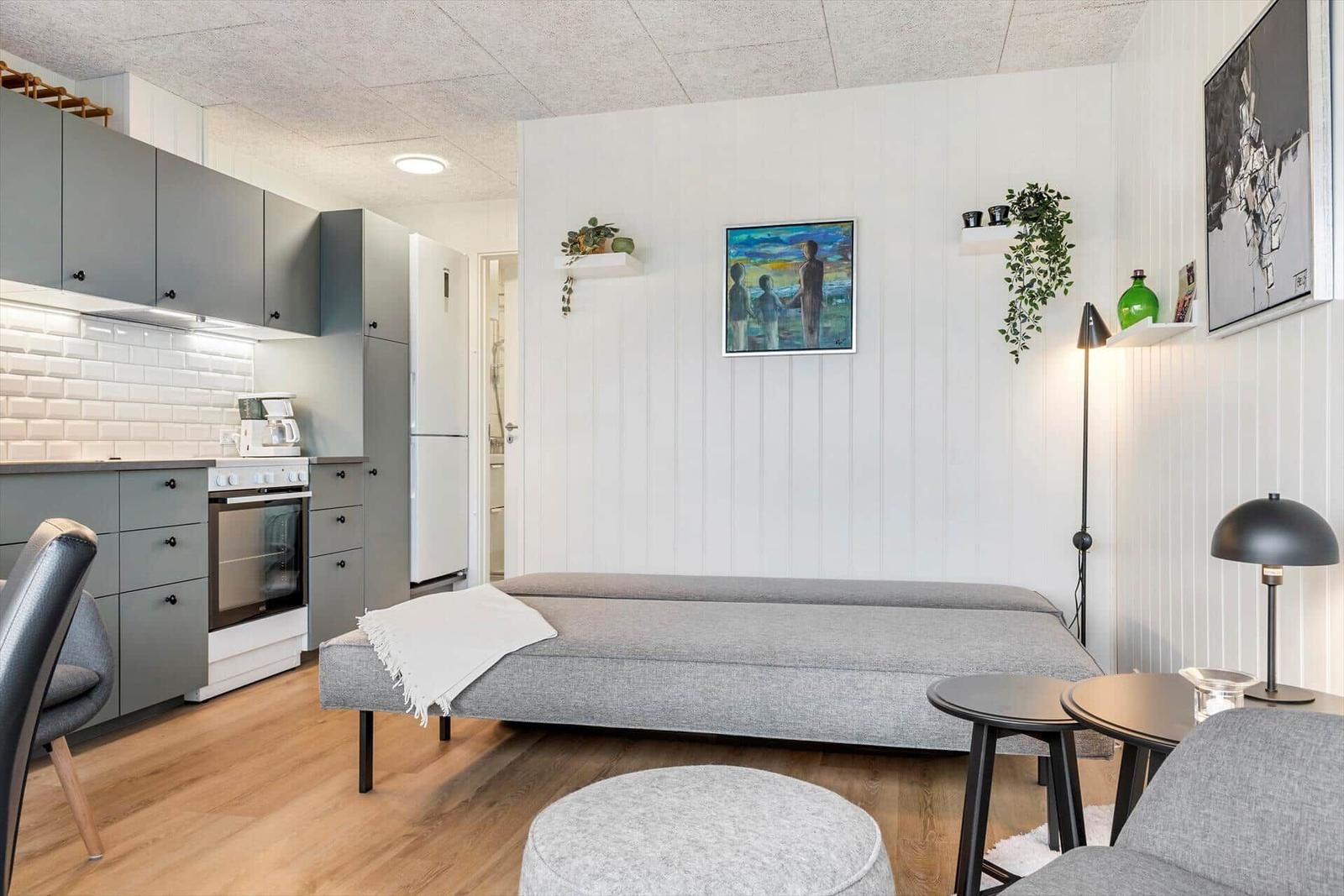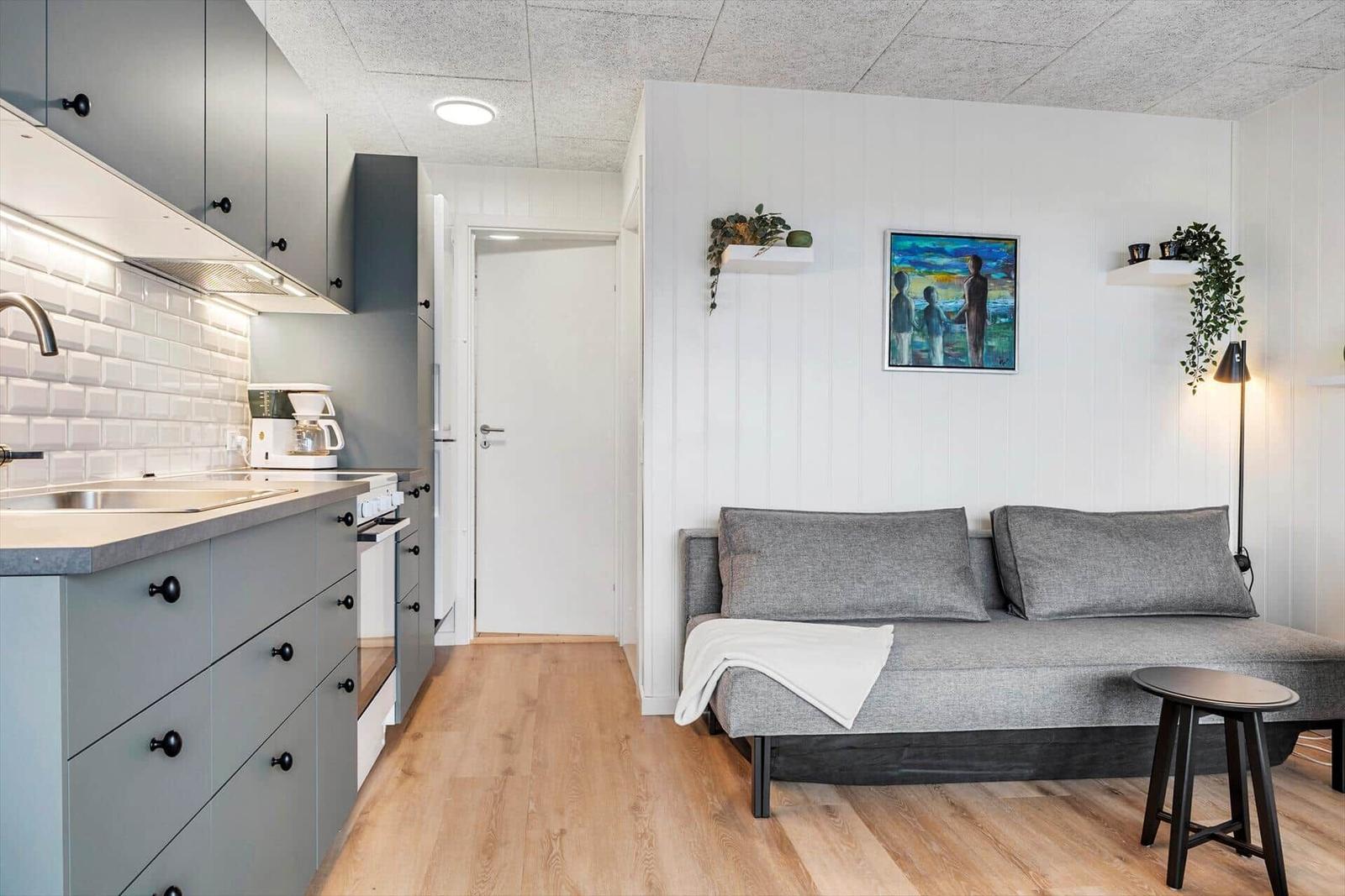 Die Ferienwohnung in Havneby, Westjütland, bietet Platz für 4 Erwachsene und besticht durch ihre gemütliche Einrichtung auf 33 m². Die Unterkunft umfasst ein Schlafzimmer mit 2 Einzelbetten sowie ein Wohnschlafzimmer mit einer Schlafcouch und zwei Kinderbetten, ideal für Familien. Das moderne Badezimmer ist mit einer Dusche ausgestattet.