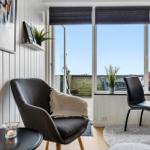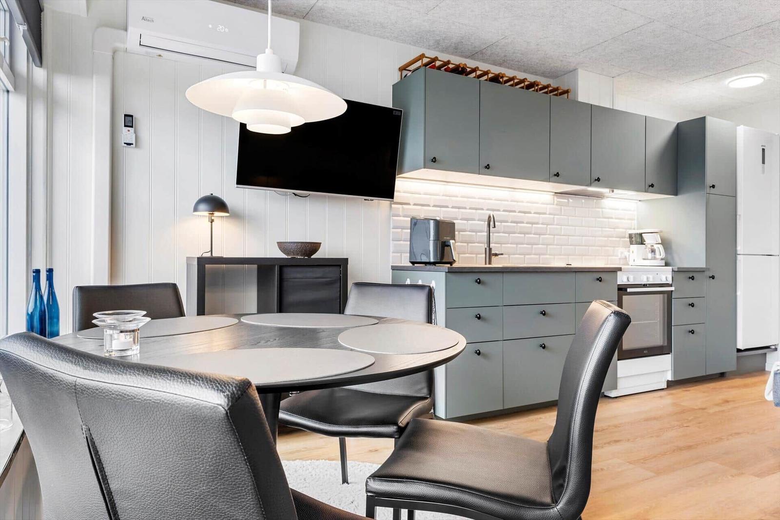 Die Küche ist komfortabel eingerichtet und verfügt über einen Backofen, Kühlschrank, Gefriermöglichkeit, Kaffeemaschine und Wasserkocher, um kulinarische Wünsche zu erfüllen. Für Unterhaltung sorgt ein Smart-TV mit TV-Zugang und kostenlosem WLAN-Internet steht ebenfalls zur Verfügung.