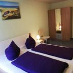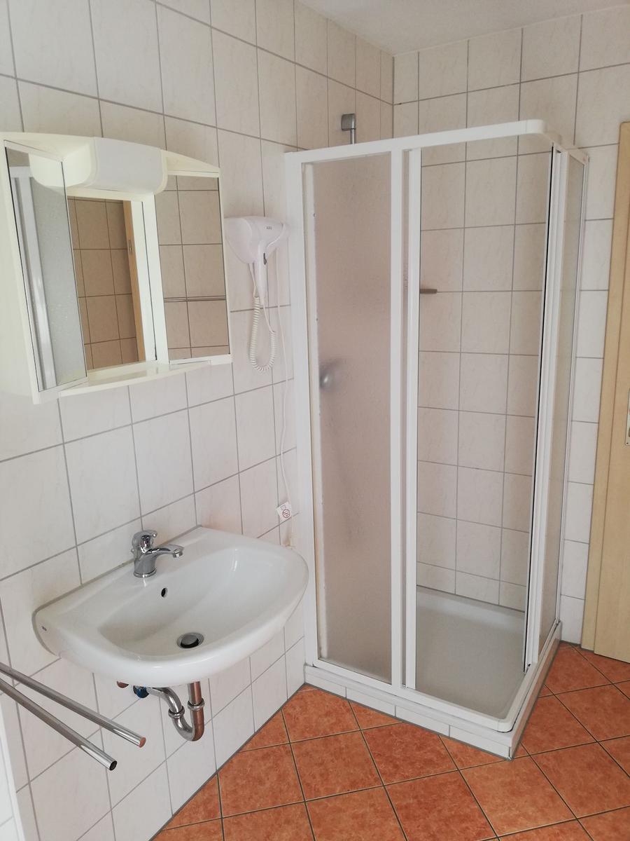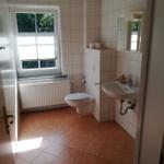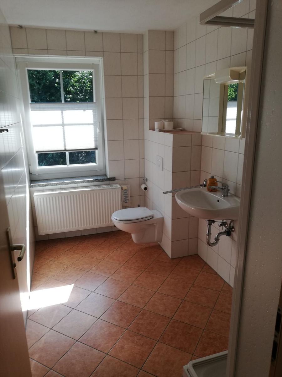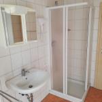 Die kleinere Ferienwohnung "Saydaer Höhe" im 2. Obergeschoss ist ca. 37 qm groß und besteht aus einem kleinen Flur, einem Bad mit DU/WC, einem Schlafzimmer mit Doppelbett sowie einer großen Wohnküche. In diesem Aufenthaltsraum gibt es einen eine kleine gut ausgestattete Küchenzeile mit Spüle, 2 Elektroherdplatten, Kühlschrank, Mikrowelle usw. sowie einem Tisch mit Stühlen, TV und einem Schlafsofa für 2 Personen.