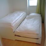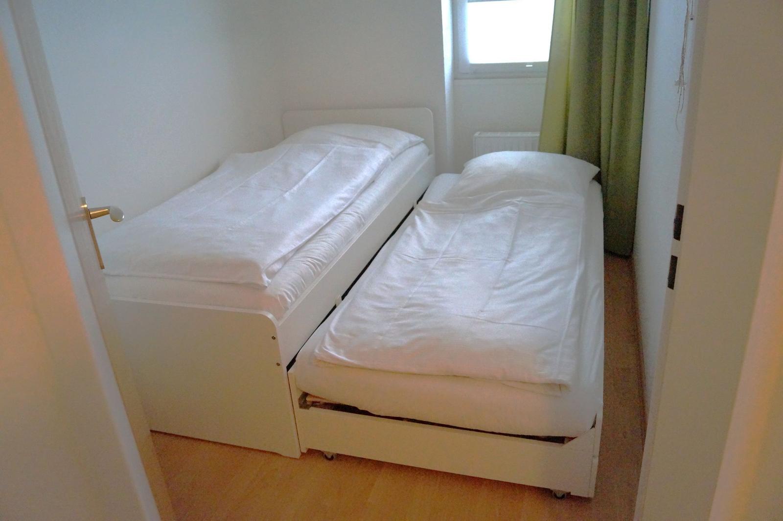 Die Ferienwohnung bietet eine moderne und umfassende Ausstattung für einen erholsamen Aufenthalt. Im ersten Obergeschoss befinden sich zwei Schlafzimmer: eines mit einem komfortablen Doppelbett und das andere mit zwei Einzelbetten, ideal für Familien oder Gruppen. Das Badezimmer ist mit einer Dusche ausgestattet. Im zweiten Obergeschoss überzeugt das Wohnzimmer mit einem gemütlichen Sofa, einem Sessel und einem Esstisch, der zu geselligen Abenden einlädt.