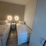 Das gemütliche Schlafzimmer verfügt über zwei Einzelbetten und bietet eine ruhige Rückzugsmöglichkeit. Das moderne Badezimmer ist mit einer Dusche und einem Haartrockner ausgestattet.