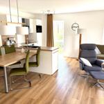 Das 81 m² große 3-Zimmer-Apartment bietet Platz für bis zu 4 Personen und beeindruckt mit seiner geschmackvollen Nichtraucherausstattung. Die offene, moderne Küche ist voll ausgestattet mit Geschirrspülmaschine, Mikrowelle, Ceranherd und Kühlschrank mit Gefrierfach. Im lichtdurchfluteten Wohn- und Essbereich sorgt ein 49 Zoll SMART-TV für Unterhaltung. Zwei separate Schlafzimmer verfügen jeweils über ein Doppelbett (1,80 x 2,00 m) und einen 32 Zoll SMART-TV. Das großzügige Tageslicht-Badezimmer mit Fußbodenheizung bietet eine private Sauna, eine Regendusche und eine Badewanne. Für Familien stehen kinderfreundliche Ausstattungen bereit, und auf Wunsch sind zusätzliche Kinderbetten und Hochstühle erhältlich. Ein kostenfreier PKW-Stellplatz und ein Aufzug sind ebenfalls vorhanden. WLAN steht kostenlos zur Verfügung.