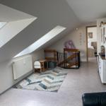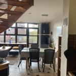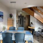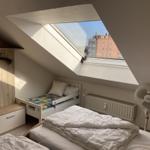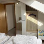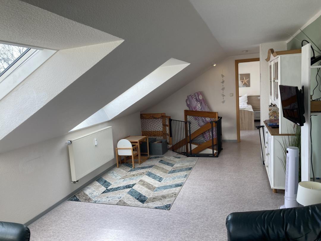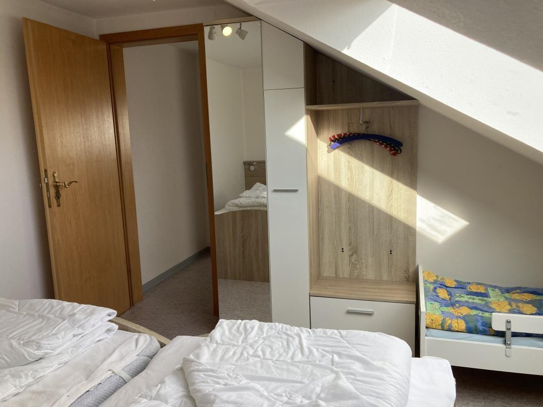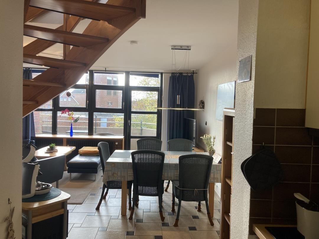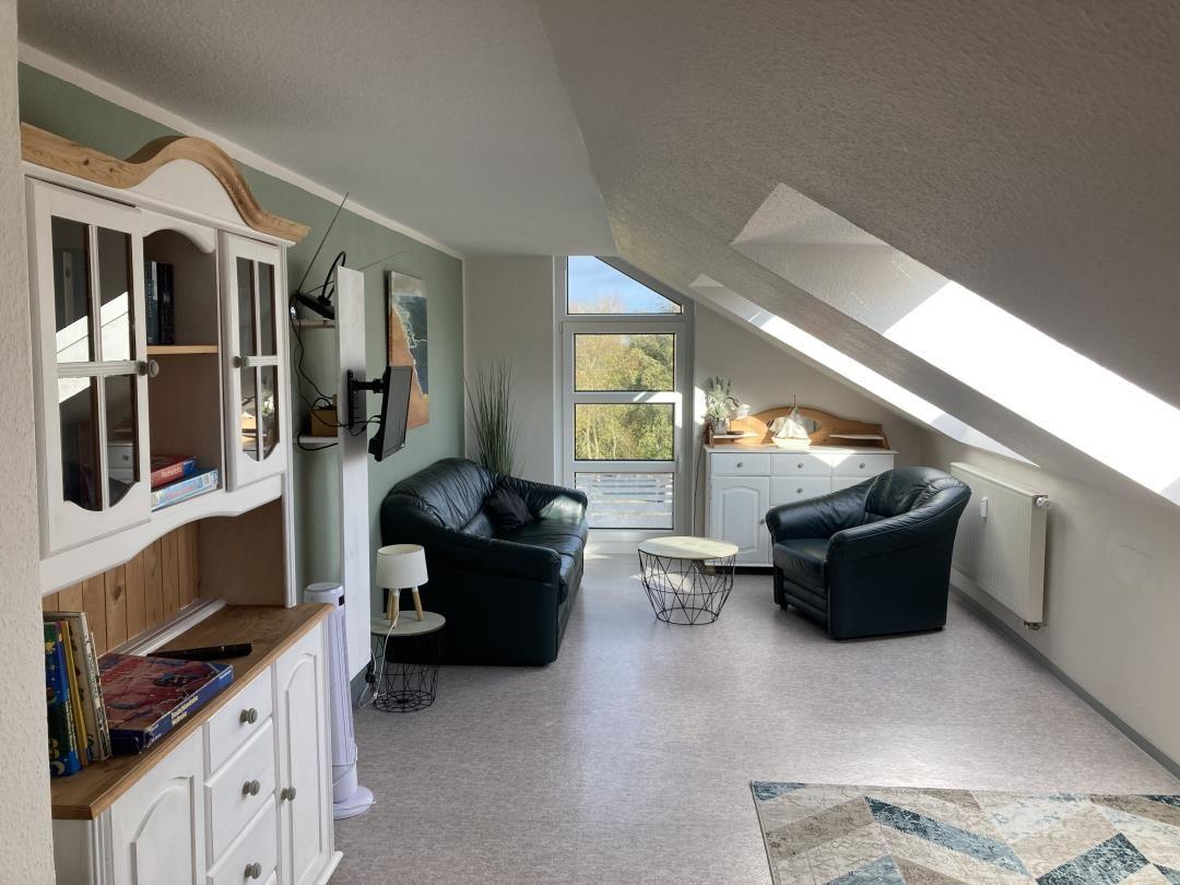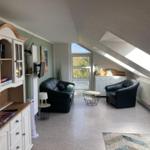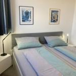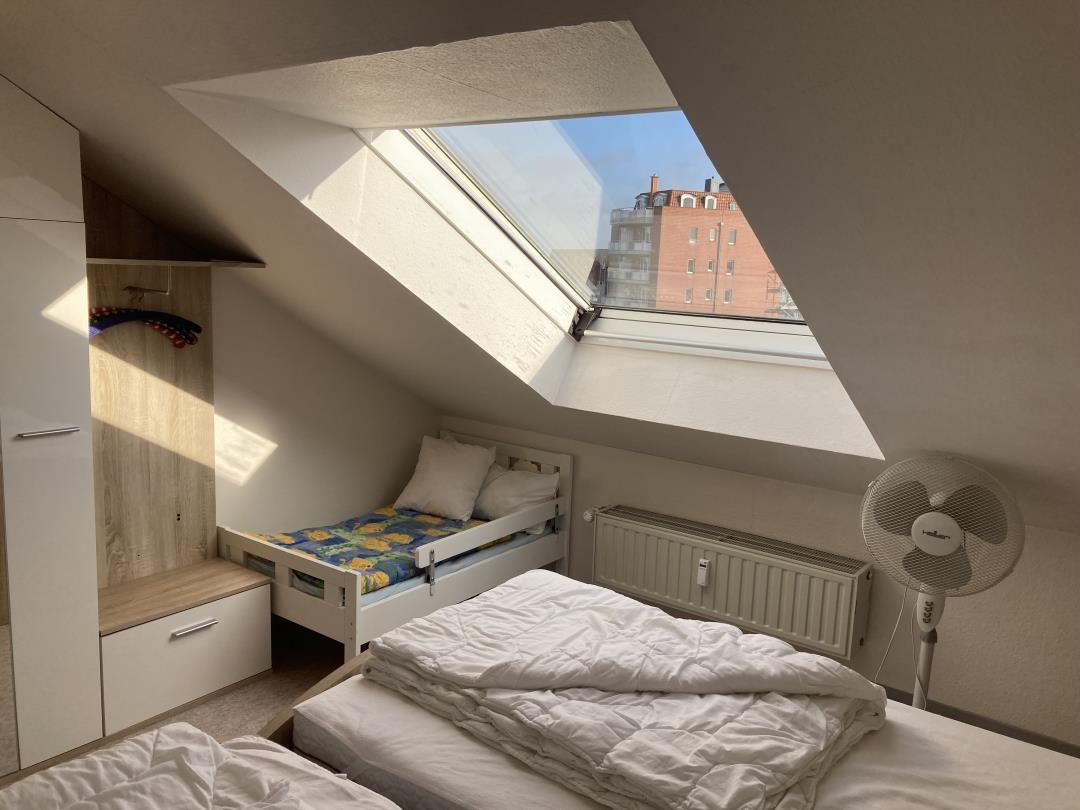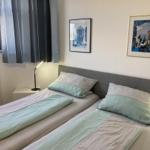 Die 3-Zimmer-Maisonettewohnung bietet großzügige 75 m² Wohnfläche und beeindruckenden Meerblick. Im unteren Bereich befindet sich das erste Schlafzimmer mit einem Doppelbett sowie ein komfortables Wohnzimmer, ausgestattet mit einer Couch und einem Fernseher, das direkt an die Küche angrenzt. Das zweite Schlafzimmer im oberen Bereich ist mit zwei großen Einzelbetten und einem kleinen, festen Kinderbett ausgestattet und bietet ebenfalls einen wunderbaren Blick auf das Meer. Ergänzend findet sich im oberen Bereich ein Studiobereich mit einer Schlafcouch, die Platz für eine zusätzliche Person bietet. Die Küche ist mit der grundlegenden Ausstattung versehen. Ein Badezimmer rundet das Angebot ab. Der Südbalkon, der vom Wohnzimmer aus zugänglich ist, ist mit Tisch und Stühlen ausgestattet, um die Aussicht zu genießen. Bettwäsche und Handtücher können auf Wunsch hinzugebucht werden.