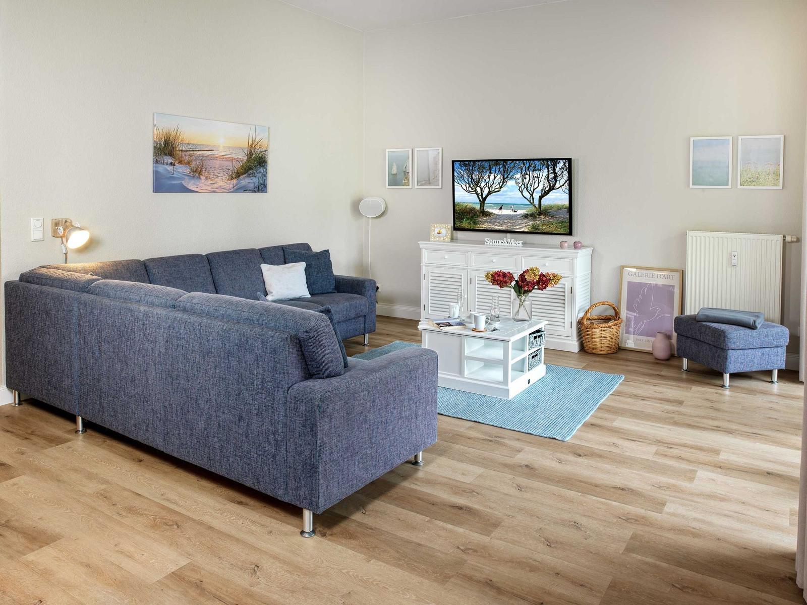 Die Ferienwohnung bietet eine komfortable und gut ausgestattete Auszeit für Erholungssuchende. Sie umfasst zwei Schlafzimmer – eines mit einem Doppelbett und eines mit zwei Einzelbetten – sowie ein Wohnschlafzimmer mit einer Schlafcouch.