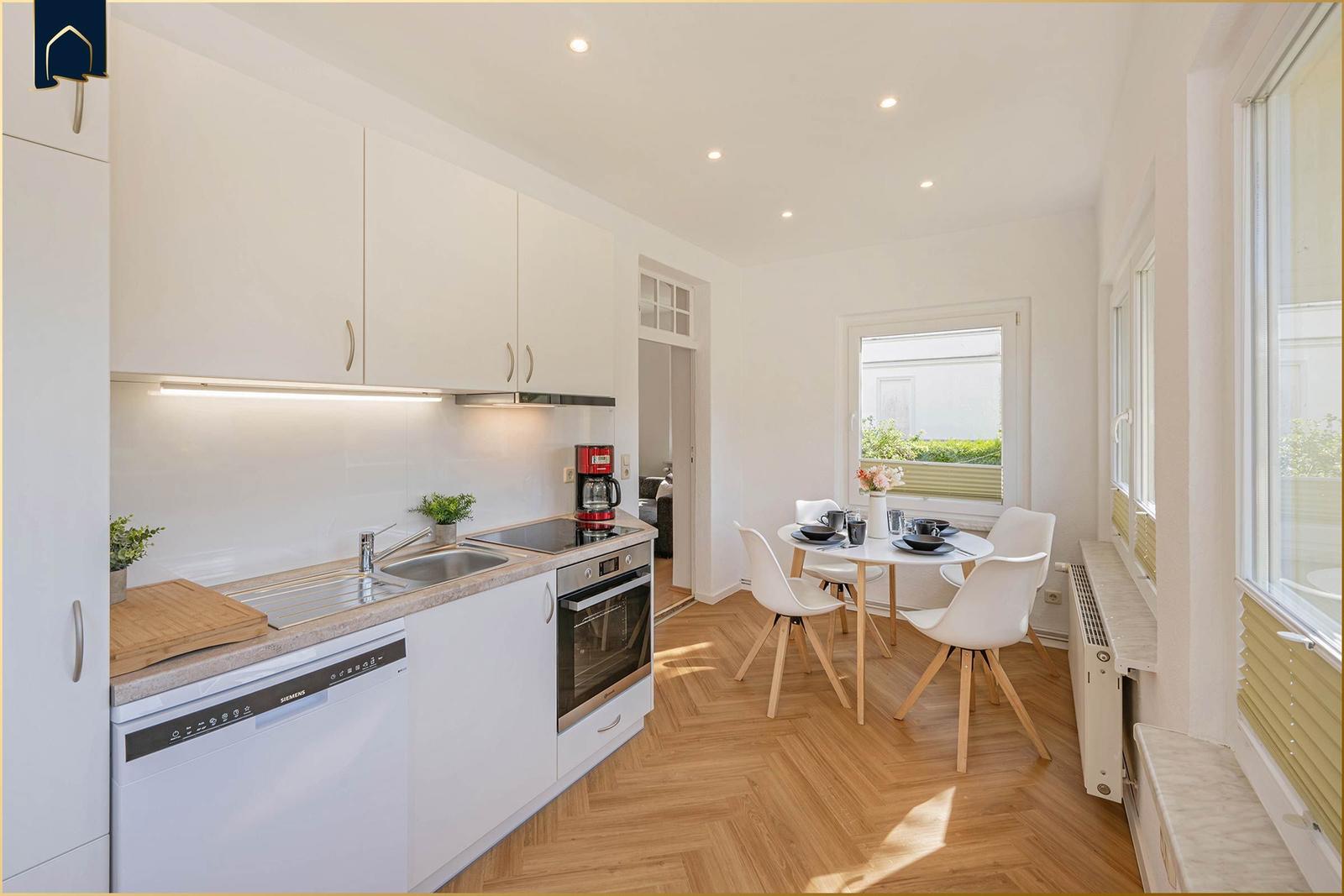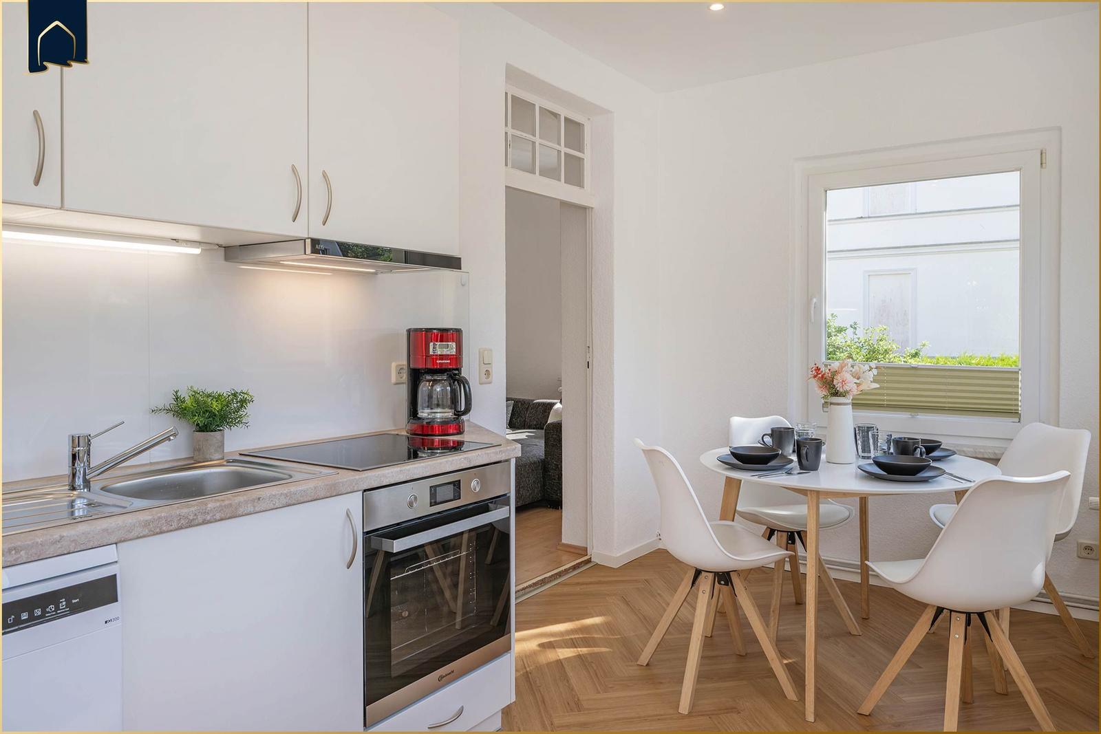 In dieser charmanten Ferienwohnung erwartet der Gast eine harmonische Kombination aus Komfort und Funktionalität. Die offene Küche ist bestens ausgestattet mit einem Geschirrspüler, Elektro-/Gasherd, Backofen, Kühlschrank, Kaffeemaschine, Toaster und Gefriermöglichkeiten, was das Zubereiten von Mahlzeiten zum Vergnügen macht. Im gemütlichen Schlafzimmer finden sich ein komfortables Doppelbett und ausreichend Stauraum in einem Schrank. Das Duschbad, ausgestattet mit einem Fenster und einem Haartrockner, sorgt für eine erfrischende Atmosphäre. Ein Kamin oder Kachelofen schafft an kühlen Abenden eine wohlige Wärme. Die Wohnung ist allergikergeeignet und bietet einen Fernseher für entspannende Stunden sowie einen Esstisch für gesellige Abende. Für zusätzlichen Komfort stehen ein Parkplatz, WLAN-Internet und diverse Haushaltsutensilien wie Geschirrtücher und ein Wäscheständer zur Verfügung. Ein sonniger Außenbereich mit Sonnenschirm lädt zum Verweilen ein.