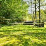 Romantischer Lagerfeuerplatz mit Blick auf den Teich