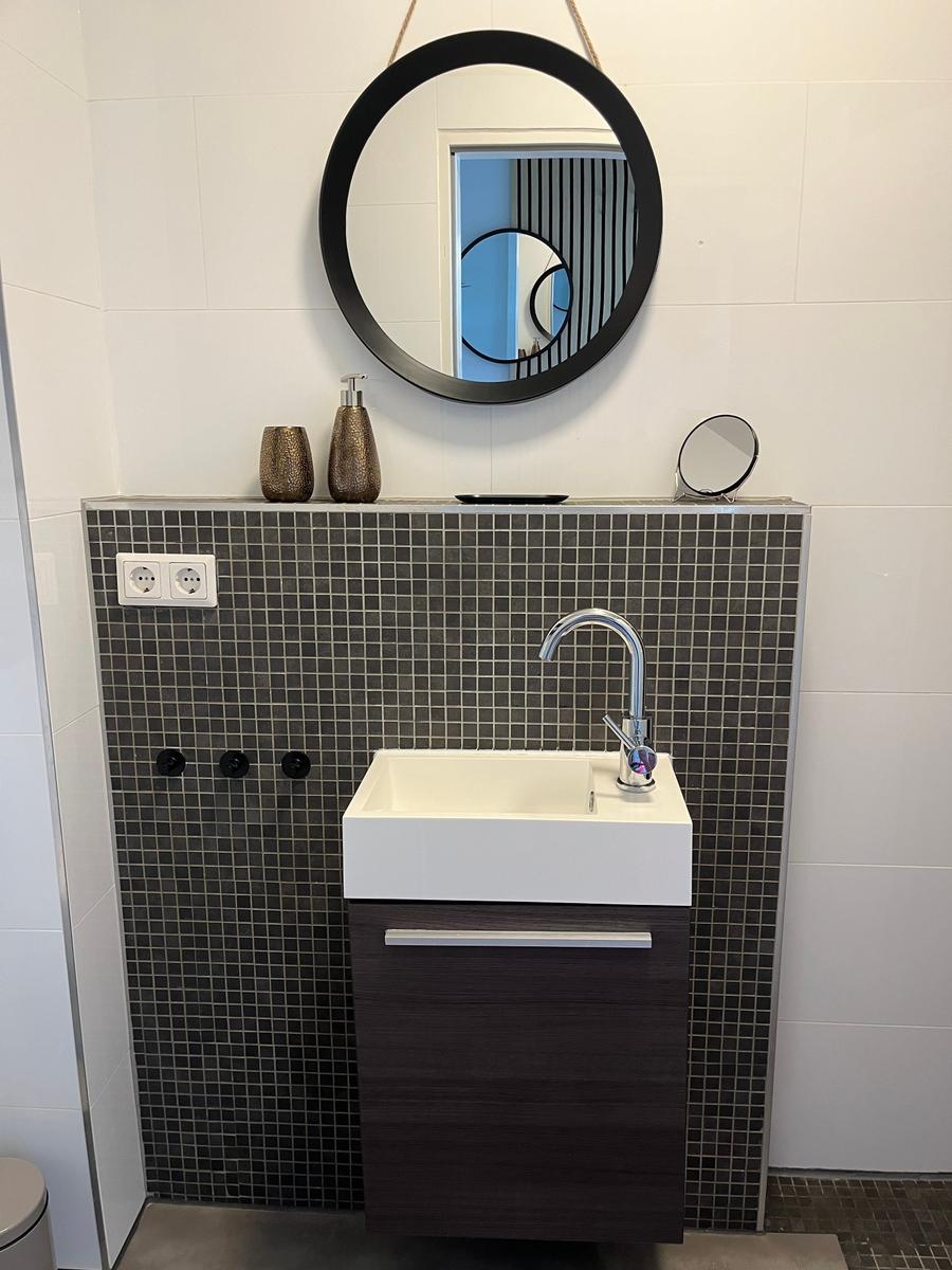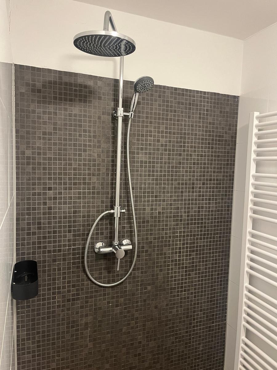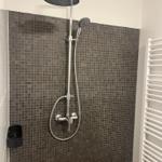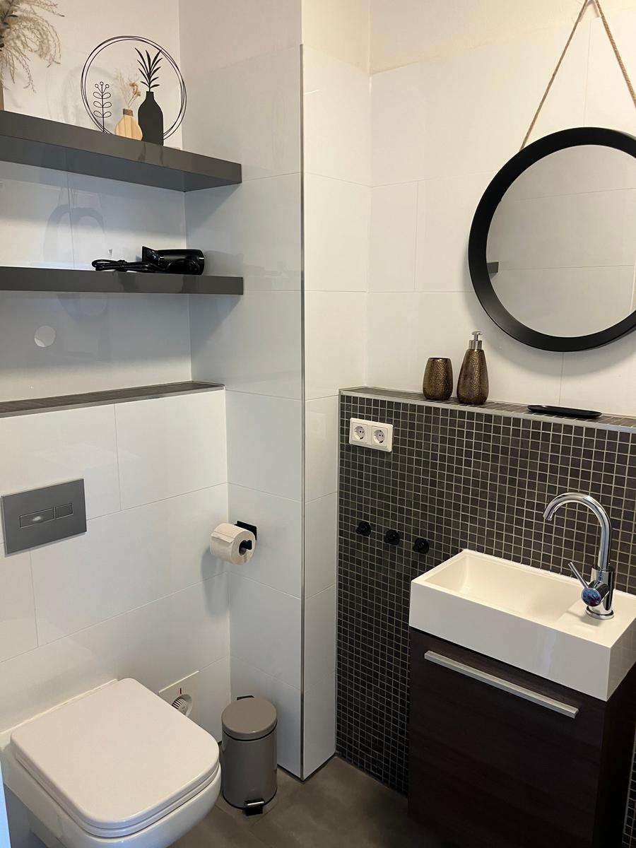- Duschbad/WC mit Fußbodenheizung, Handtuchheizkörper, Kosmetikspiegel und Föhn