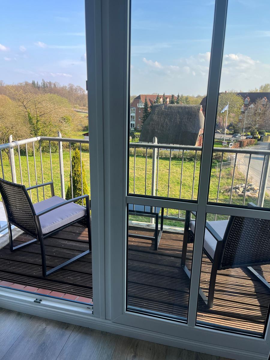 - Süd/West-Balkon mit Balkonmöbeln und Blick ins Grüne