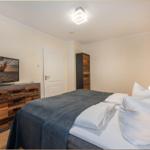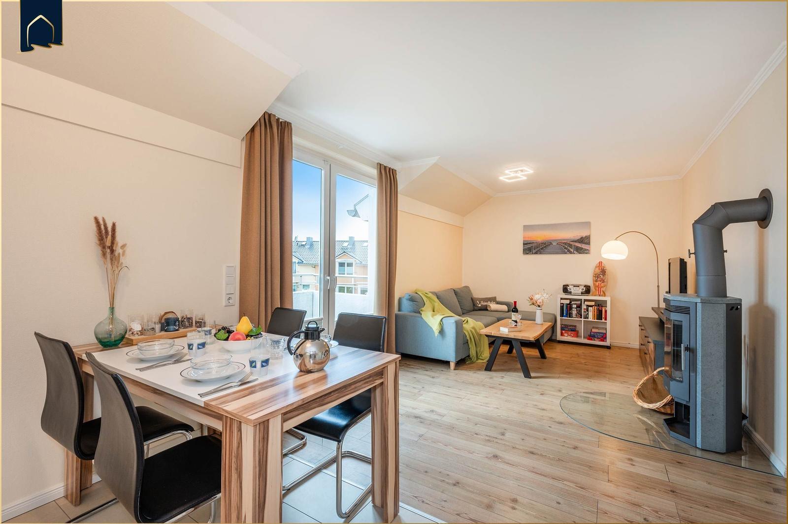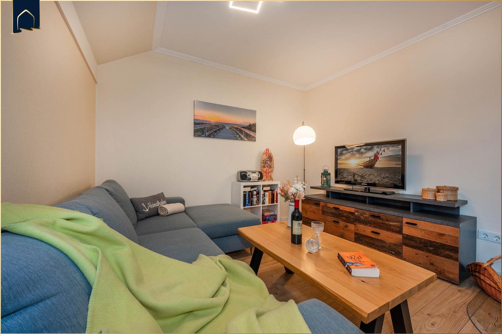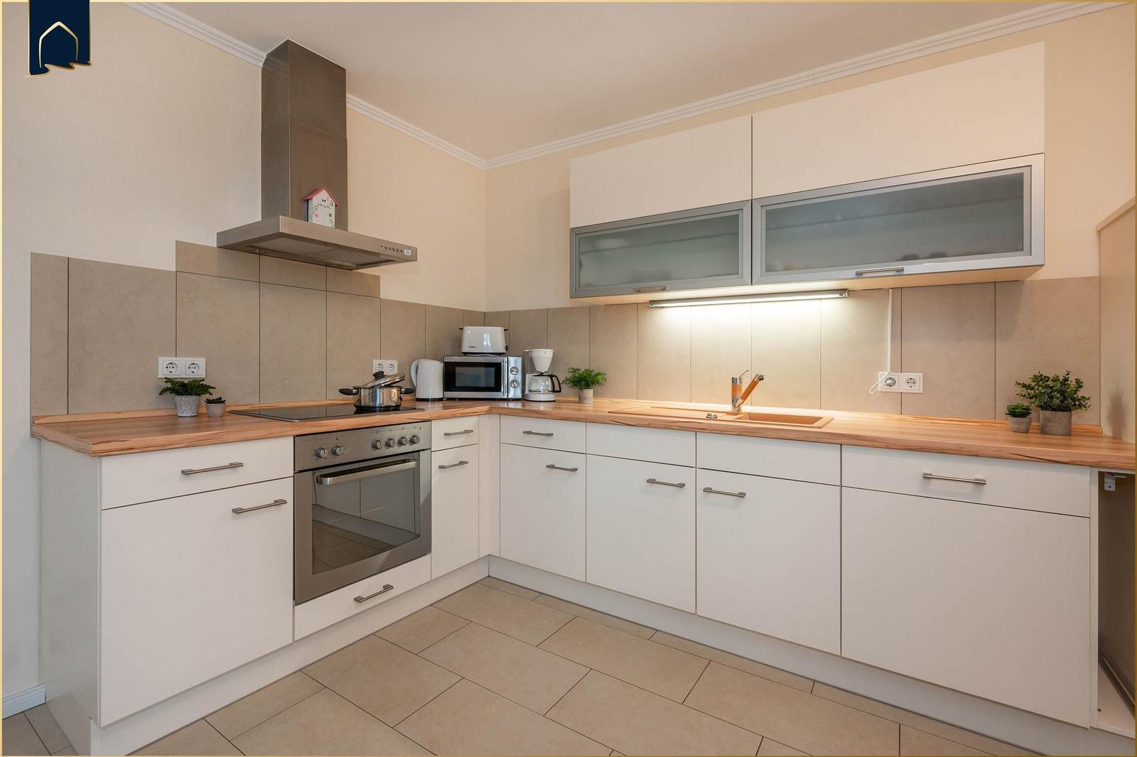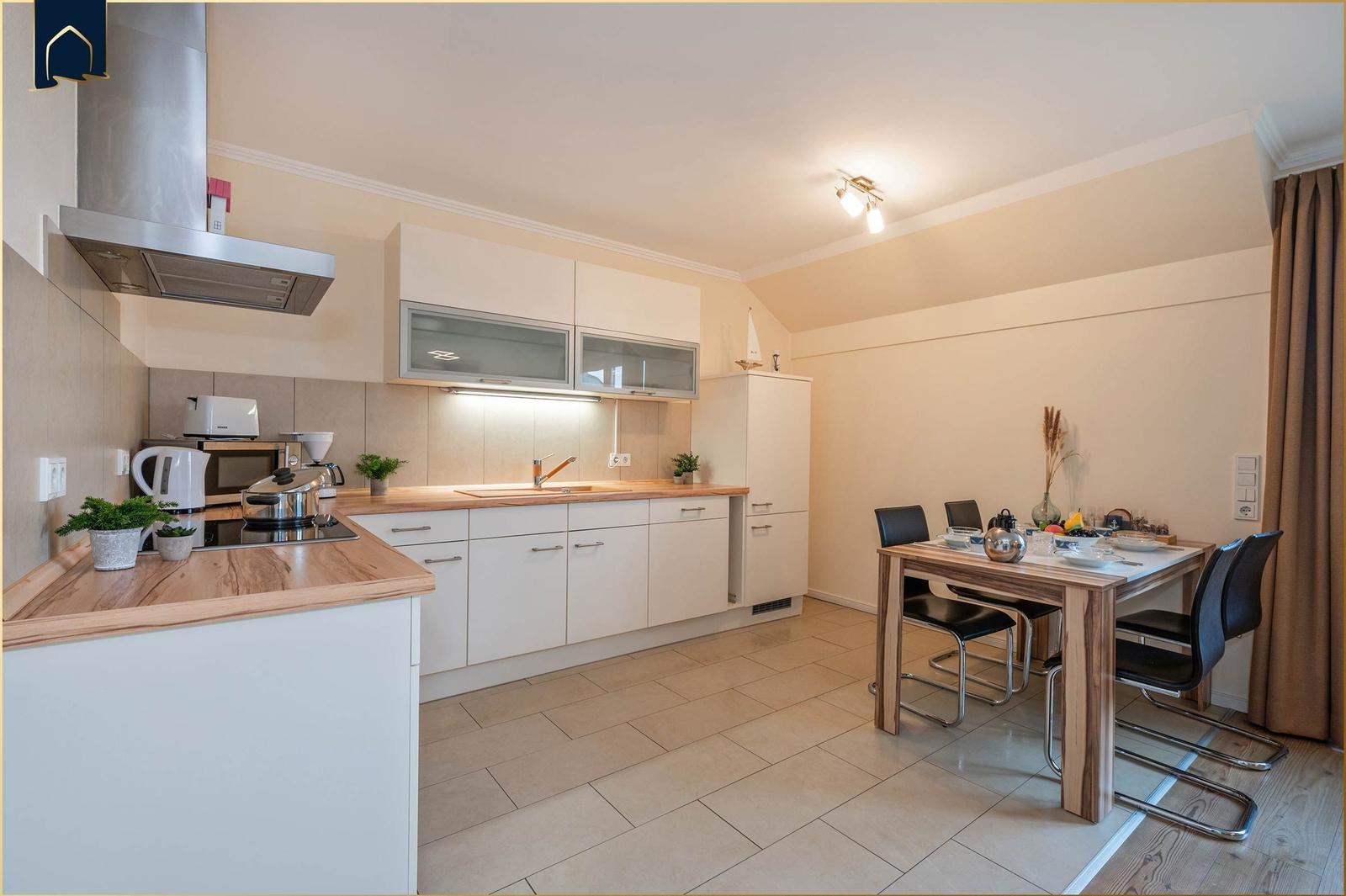 Die Ferienwohnung bietet ein modernes und komfortables Ambiente für jeden Aufenthalt. Sie verfügt über ein geräumiges Schlafzimmer und ein helles Badezimmer mit einer bodengleichen Dusche. Die offene Küche ist mit einem Geschirrspüler, Elektro-/Gasherd, Backofen, Mikrowelle, Kühlschrank, Kaffeemaschine, Toaster und Gefriermöglichkeit ausgestattet und lässt keine Wünsche offen.