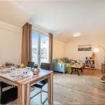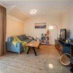 Das Wohnzimmer ist mit einem Sofa und einer HiFi-Anlage sowie einem TV ausgestattet und lädt zum Entspannen ein. Die monatliche Fußbodenheizung sorgt für behagliche Wärme. Die Wohnung ist barrierefrei, seniorengerecht und allergikerfreundlich gestaltet. Zudem steht ein Parkplatz sowie ein Fahrstuhl zur Verfügung. Die Annehmlichkeiten wie Geschirr, Besteck und Geschirrtücher sind ebenfalls vorhanden.