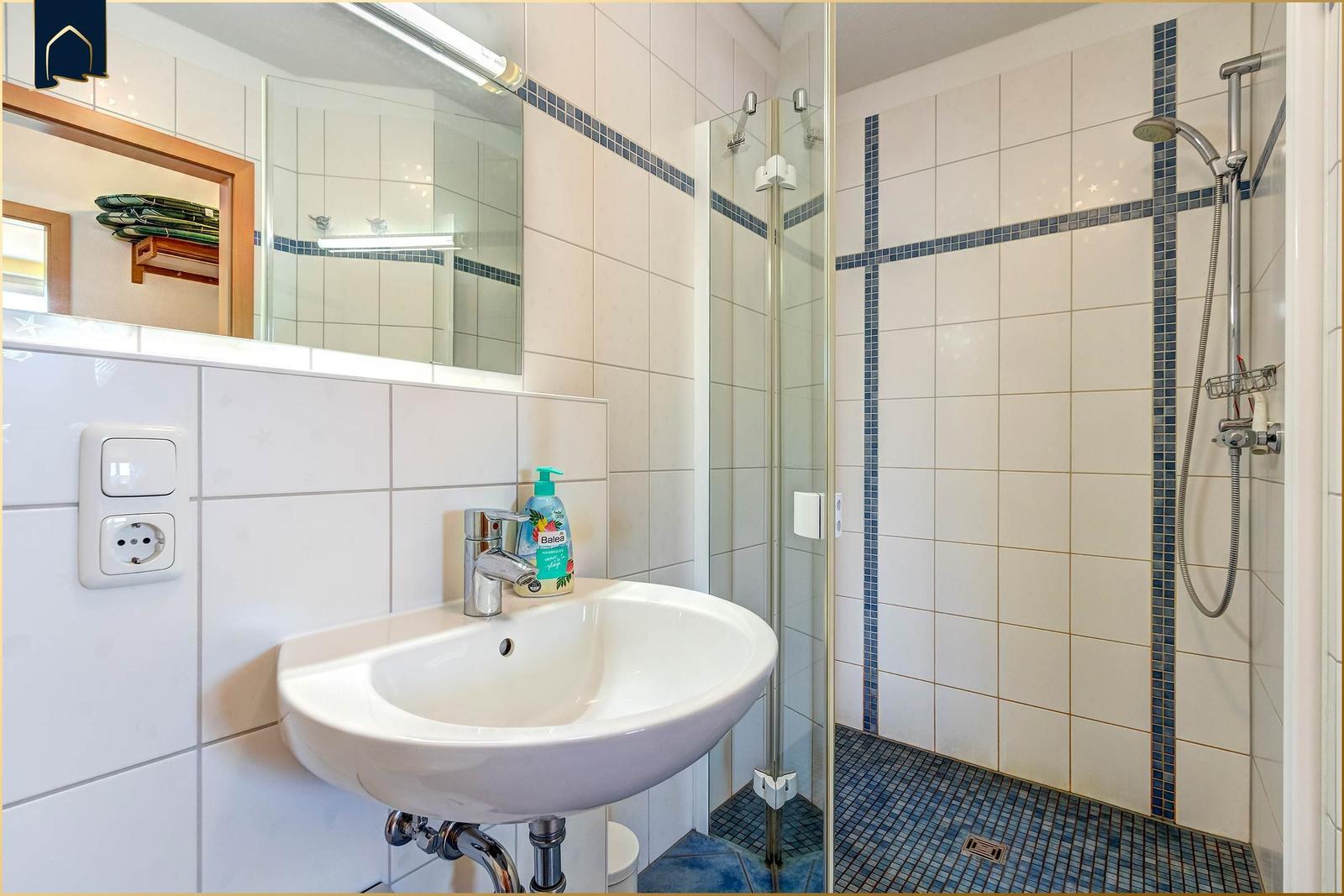 Im vielseitigen Duschbad erwartet die Gäste eine bodengleiche Dusche sowie ein Haartrockner und Kosmetikspiegel für zusätzlichen Komfort. Der Wohnbereich gestaltet sich einladend mit Sofa, Sessel und Esstisch, ideal für entspannte Abende. Praktische Annehmlichkeiten wie TV, WLAN, Fußbodenheizung, Garderobe und Parkplatz runden das Angebot ab. Frische Geschirrtücher und Geschirr sowie Besteck sind ebenfalls vorhanden. Ein Sonnenschirm sorgt für angenehmen Schatten auf der Terrasse. Die Vermietung ist rauchfrei.