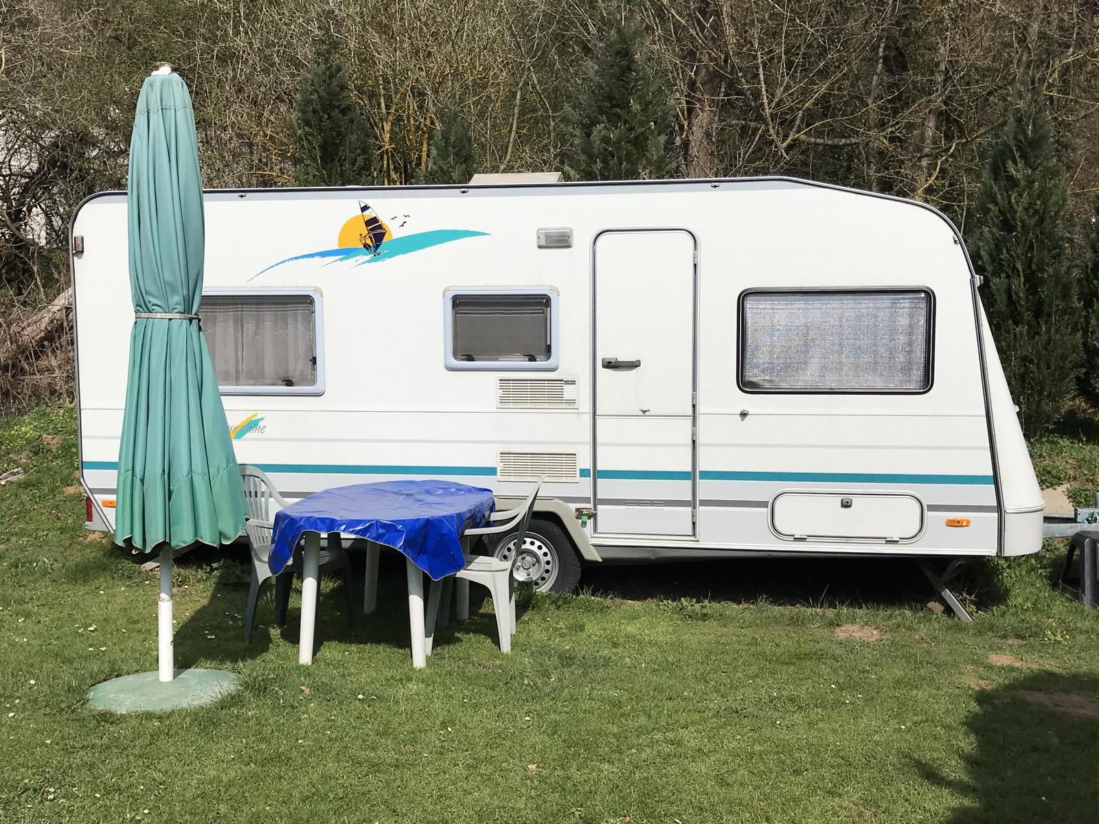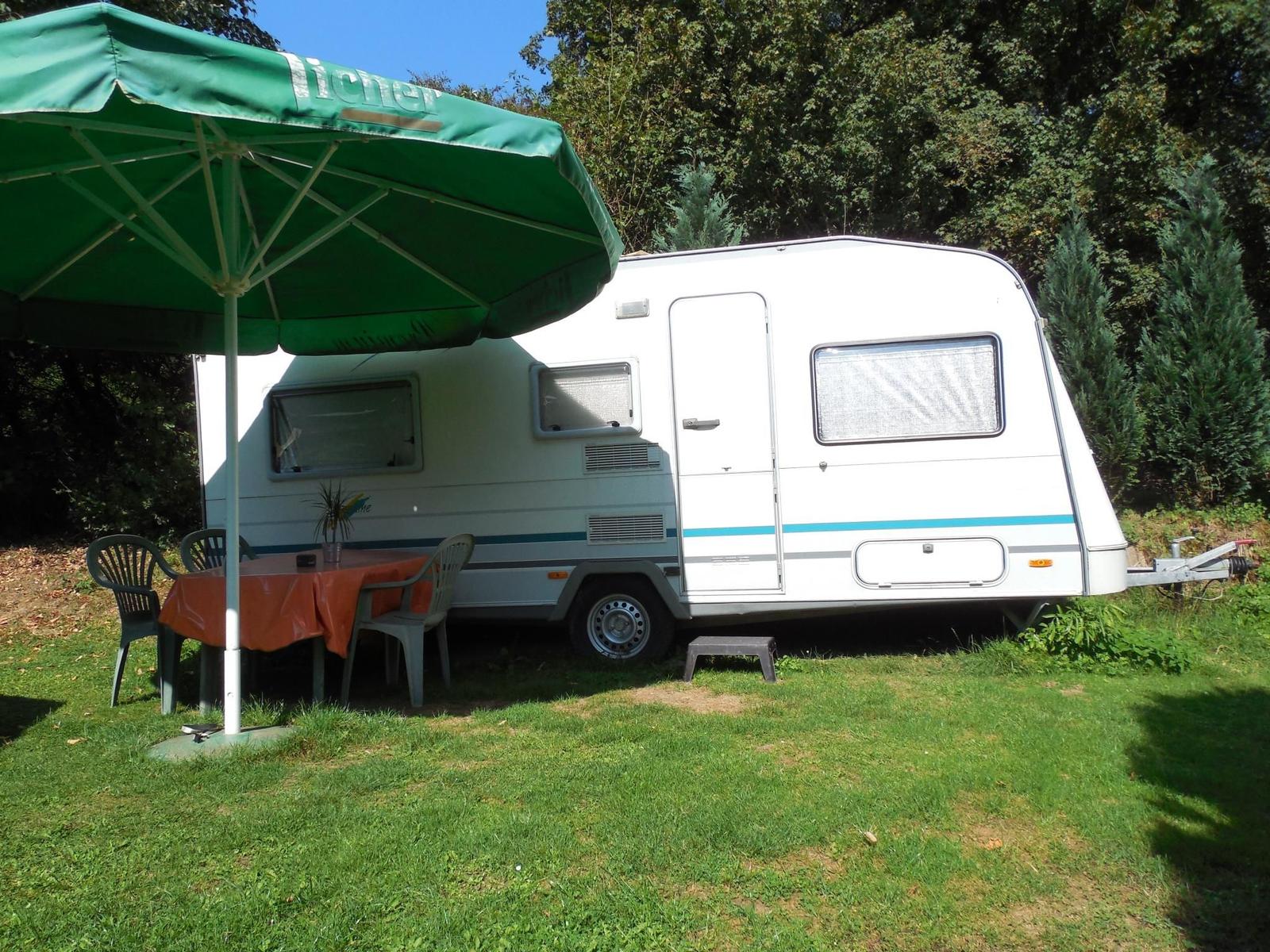 Der Wohnwagen Nr. 9 befindet sich hinter dem Haupthaus. Ein Sonnenschirm, ein Tisch und Stühle stehen Ihnen neben dem Wohnwagen zur Verfügung.