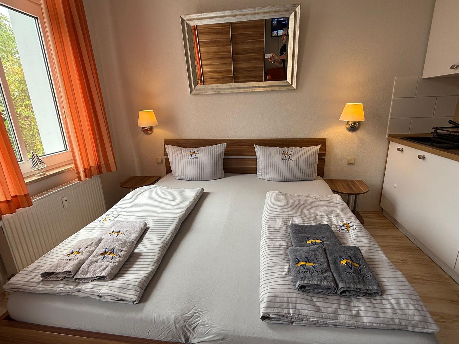 Diese charmante Ferienwohnung bietet einen idealen Rückzugsort für Erholungssuchende. Sie verfügt über ein komfortables Schlafzimmer mit einem Doppelbett, das eine entspannende Nachtruhe ermöglicht. Das Badezimmer ist modern gestaltet und bietet alle nötigen Annehmlichkeiten, um den Aufenthalt angenehm zu gestalten.