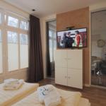 Die exzellente Lage der Wohnung sorgt dafür, dass Besucher die umliegende Natur genießen und die frische Luft erleben können. So wird der Außenbereich zu einem wertvollen Bestandteil des Aufenthalts, der die Erholung und den gemeinsamen Austausch fördert.