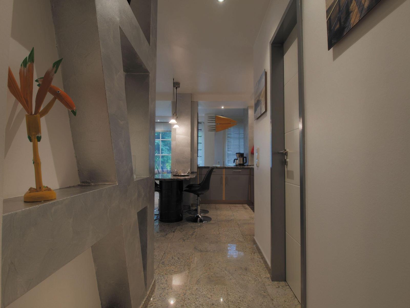 Die charmante 3-Zimmer-Ferienwohnung im Erdgeschoss eines historischen Warnemünder Hauses erstreckt sich über ca. 60 m² und bietet maritimen Charme sowie modernen Komfort. Der gemütliche Wohn- und Essbereich ist mit einer Fernsehecke, einer modernen Küchenzeile und einem stilvollen Essbereich ausgestattet. Die voll ausgestattete Küche umfasst Geschirrspüler, Kühlschrank, Herd mit Backofen, Kaffeemaschine, Wasserkocher und Toaster. In den zwei behaglichen Schlafzimmern finden sich jeweils komfortable Doppelbetten für erholsamen Schlaf. Das moderne Badezimmer verfügt über eine Dusche und eine große Eckbadewanne. Kostenfreies WLAN ist vorhanden, und Hunde sind herzlich willkommen. Die zentrale Lage bietet Nähe zu Strand und Hafenpromenade, wobei der Georginenplatz nicht für Autos befahrbar ist und kein Stellplatz zur Verfügung steht.