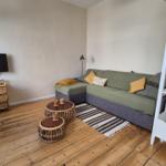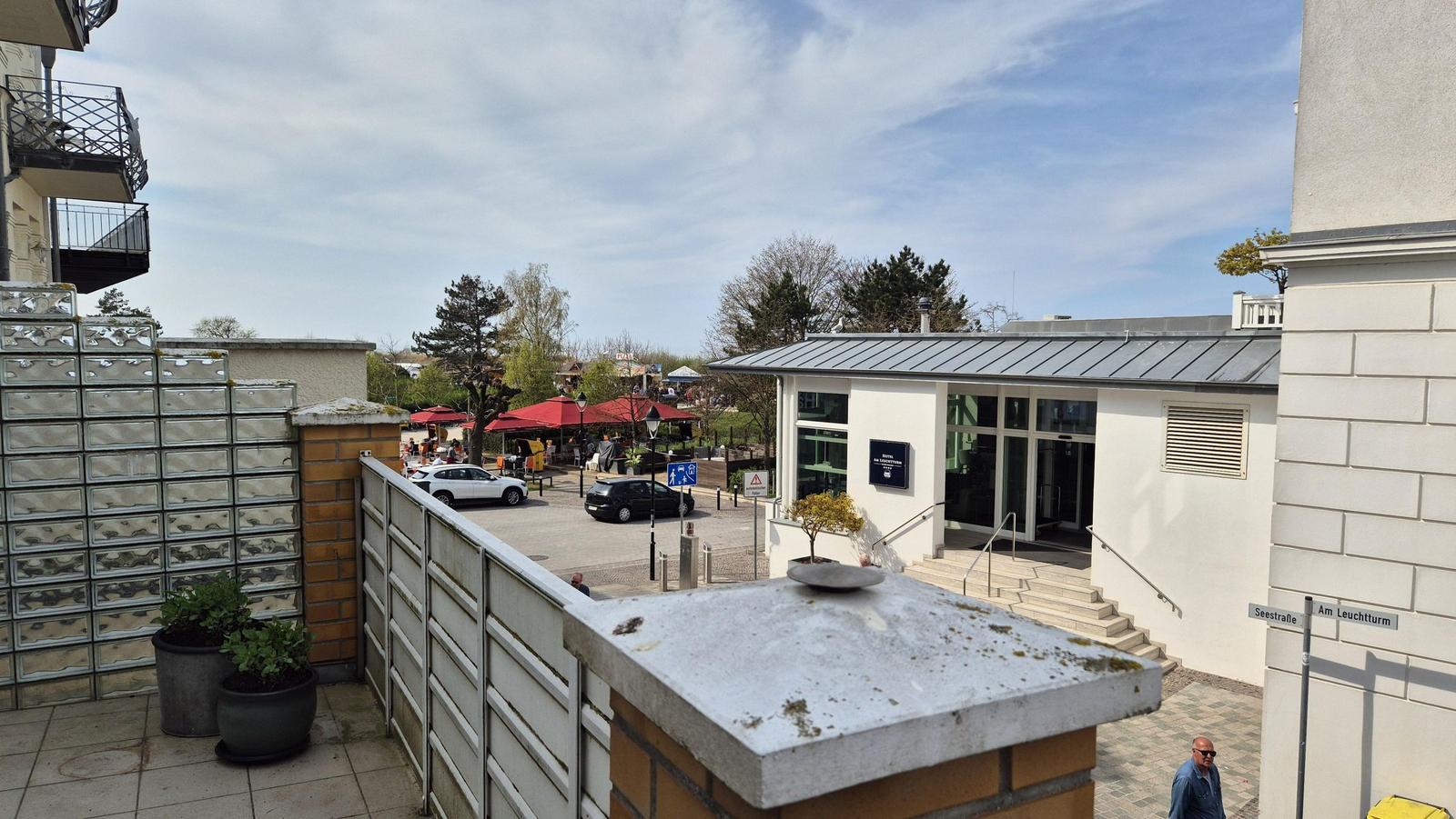 Der Außenbereich der Ferienwohnung bietet einen einladenden Balkon, ausgestattet mit bequemen Gartenmöbeln. Von hier aus genießen die Gäste einen traumhaften Blick auf den Warnemünder Leuchtturm, der den perfekten Rahmen für entspannte Stunden im Freien schafft. Die strandnahe Lage, nur 110 Meter vom Wasser entfernt, ermöglicht zudem den direkten Zugang zum Strand, wo sich zahlreiche Freizeitaktivitäten anbieten. Einkaufsmöglichkeiten und Restaurants sind in unmittelbarer Nähe zu finden, was den Aufenthalt zusätzlich bereichert. der Balkon ist ein persönliches Highlight, um den Tag beim Frühstück oder einem Abendessen ausklingen zu lassen. Bei dieser Ferienwohnung handelt es sich um eine gemeinschaftlich nutzbare Außenfläche, die den Gästen eine harmonische Verbindung zur maritimen Umgebung schafft.