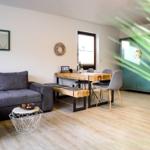 Diese Ferienwohnung bietet einen komfortablen Rückzugsort mit gut durchdachter Ausstattung. Sie verfügt über zwei Schlafzimmer mit jeweils einem Doppelbett sowie ein Wohnschlafzimmer mit einer bequemen Schlafcouch. Das Badezimmer ist mit einer bodengleichen Dusche, einer Badewanne und einem Fenster ausgestattet, was für zusätzliche Helligkeit sorgt. Der Wohnbereich lädt mit einem Sofa und einem Esstisch zum Entspannen und Verweilen ein.