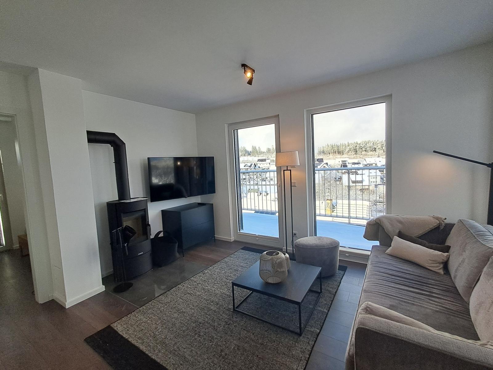 Die Ferienwohnung Gebirgsresort Schanzenpanorama Wohnung 1.4.1 bietet eine großzügige, geschlossene Terrasse mit hochwertigen Gartenmöbeln, Sonnenliegen und einem Sonnenschirm, die einen atemberaubenden Ausblick auf die umliegende Landschaft ermöglicht. Hier können entspannte Stunden im Freien genossen werden. Der Sichtschutz an den Fenstern sorgt zusätzlich für ein angenehmes Wohlfühlambiente. Der Außenbereich ist jedoch nur gemeinschaftlich nutzbar und steht den Gästen zur Verfügung. Die Lage der Wohnung ermöglicht schnellen Zugang zu zahlreichen Freizeitmöglichkeiten, darunter Skilifte, Einkaufsmöglichkeiten und Restaurants, die sich alle im unmittelbaren Umfeld befinden. Dies macht die Unterkunft zu einem idealen Ausgangspunkt für aktive Erholung an der frischen Luft.