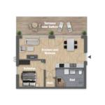 Die moderne Ferienwohnung im Gebirgsresort Gedankenpause bietet einen einladenden Außenbereich, der mit einem überdachten Balkon ausgestattet ist. Hier stehen Gartenmöbel, Sonnenliegen und ein Sonnenschirm bereit, um den atemberaubenden Blick auf die umliegenden Berge in vollen Zügen zu genießen. Der Balkon ist der ideale Ort, um die Natur zu erleben und die Ruhe der Umgebung zu schätzen. Die gemeinschaftlich nutzbare Gestaltung des Außenbereichs gewährleistet, dass Gäste einen Rückzugsort haben, während sie dennoch die sozialen Aspekte des Aufenthalts genießen können. Ein eigenes Carport für Ihr Fahrzeug rundet das Angebot ab, sodass bequemes Parken jederzeit garantiert ist. Der Außenbereich ergänzt das komfortable Erlebnis der Ferienwohnung und trägt zur Erholung während des Aufenthalts in Winterberg bei.