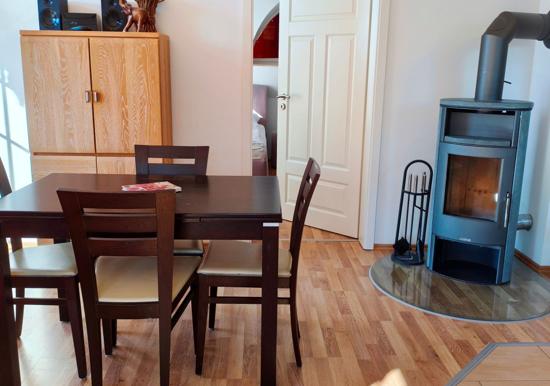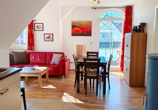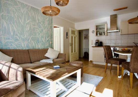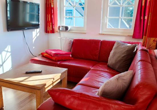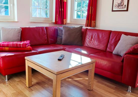 Ein Esstisch lädt zu gemeinsamen Mahlzeiten ein, während die gemütliche Sitzecke mit Sofa und Sessel für entspannte Stunden sorgt. Die Ausstattung umfasst zudem WLAN-Internet, eine HiFi-Anlage, TV sowie Geschirr und Besteck, um den Aufenthalt so angenehm wie möglich zu gestalten. Für Allergiker geeignet, bietet die Wohnung auch Fliegengitter und eine Heizung für warme Zeiten. Ein Parkplatz steht zur Verfügung, sodass die Anreise bequem gestaltet werden kann. Entspannung und Komfort warten in dieser ansprechenden Ferienwohnung.