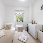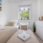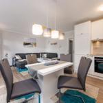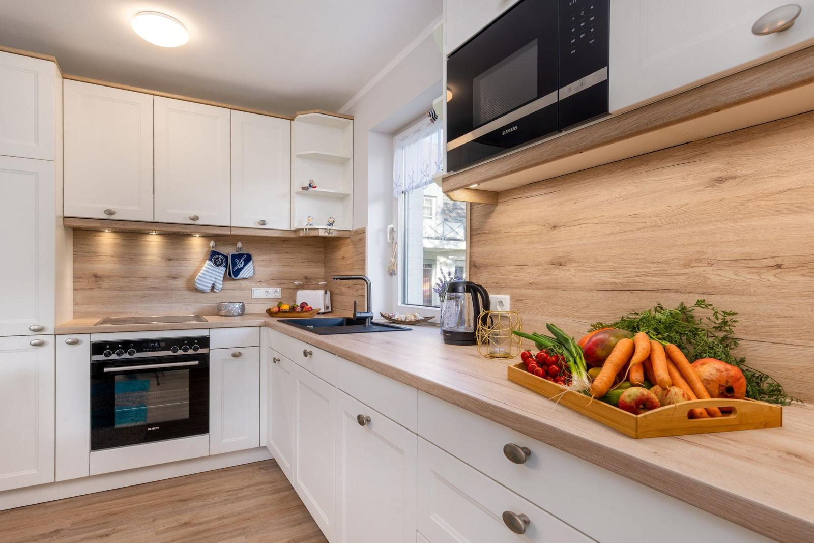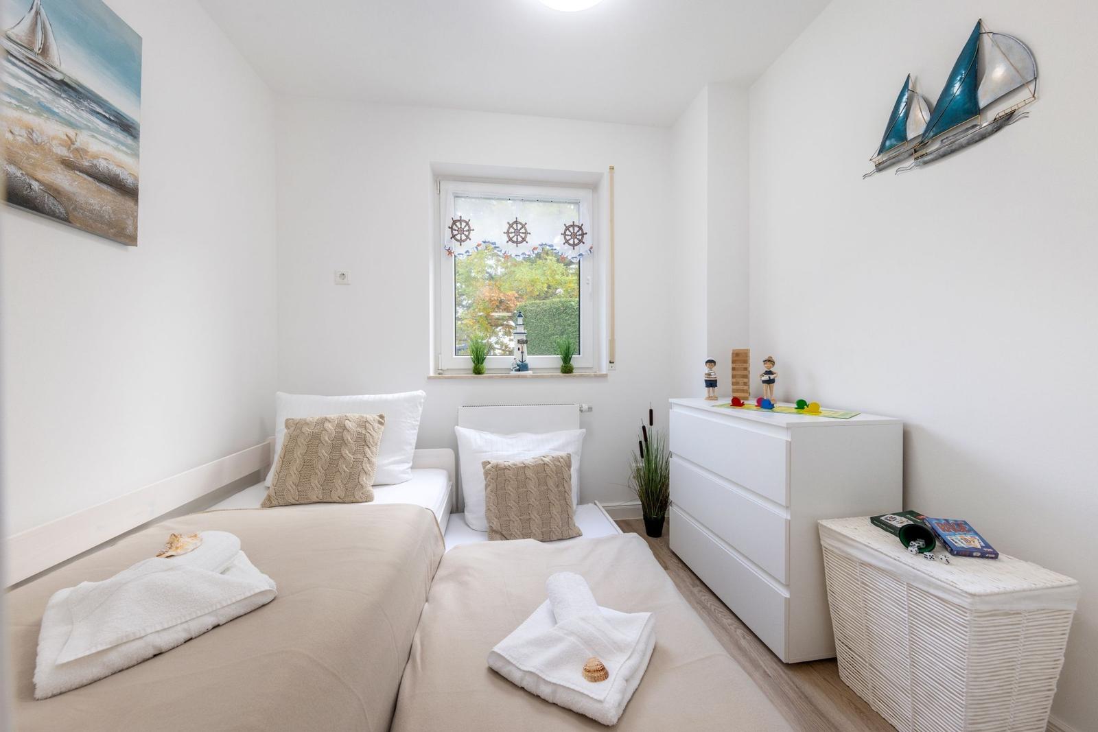 Die Ferienwohnung FeWo Bianca in Zingst bietet auf 63 m² Platz für bis zu vier Personen. Die Unterkunft verfügt über zwei separate Schlafzimmer, eines mit einem komfortablen Doppelbett (180x200 cm) und eines mit einem ausziehbaren Einzelbett (90x200 cm). Der offene Wohn- und Essbereich ist mit einer gemütlichen Sofaecke, einem TV mit Satellitenanschluss und kostenfreiem WLAN ausgestattet. Die moderne Küche beinhaltet einen Induktionsherd, Backofen, Mikrowelle, Kühlschrank mit Gefrierfach, Spülmaschine sowie eine Nespresso-Espressomaschine. Das stilvolle Badezimmer umfasst eine bodengleiche Dusche. Praktische Ausstattungen wie ein Kinderhochstuhl, Steckdosensicherungen und ein Bollerwagen sind vorhanden. Die Wohnung ist ein Nichtraucherdomizil und bietet eine Zentralheizung. Ein privater Parkplatz und eine eigene Waschmaschine stehen ebenfalls zur Verfügung. Haustiere sind nach Anfrage erlaubt, was das Urlaubsgefühl für die ganze Familie abrundet.