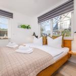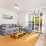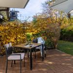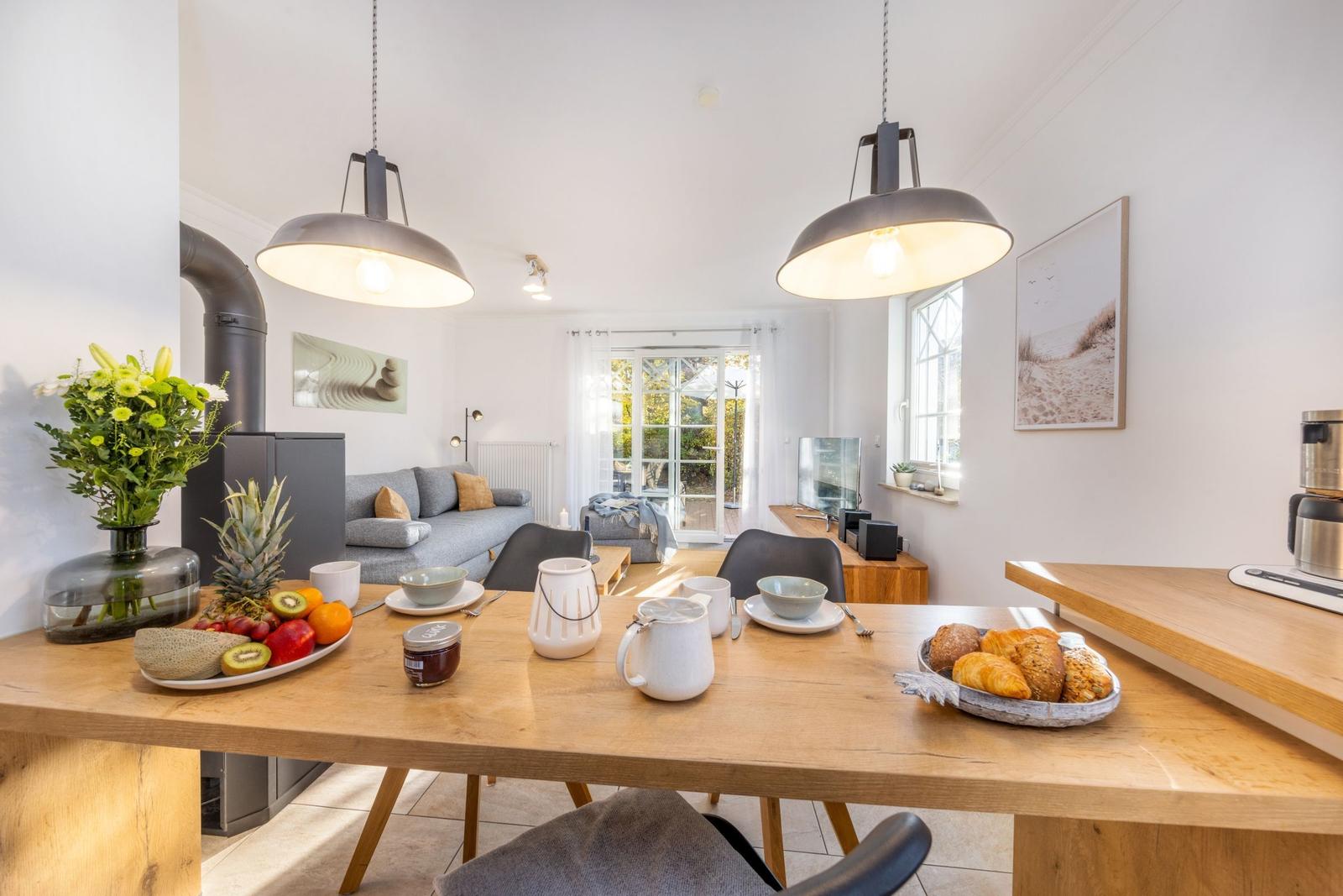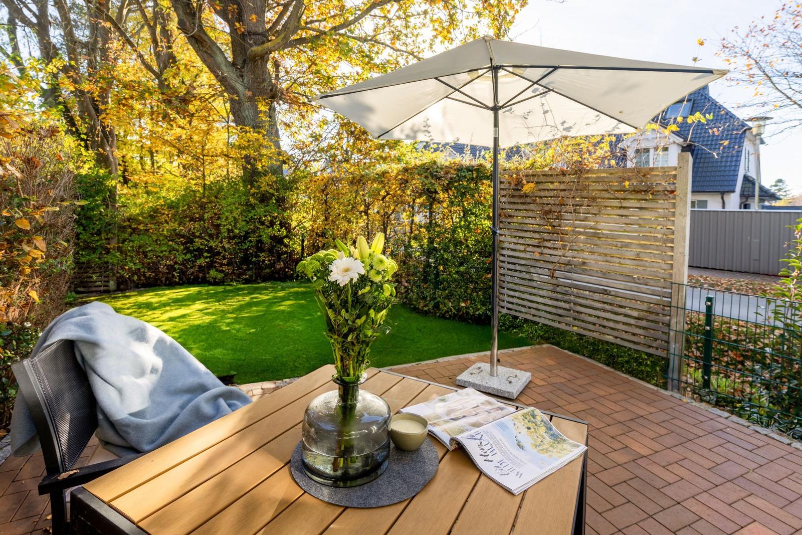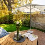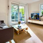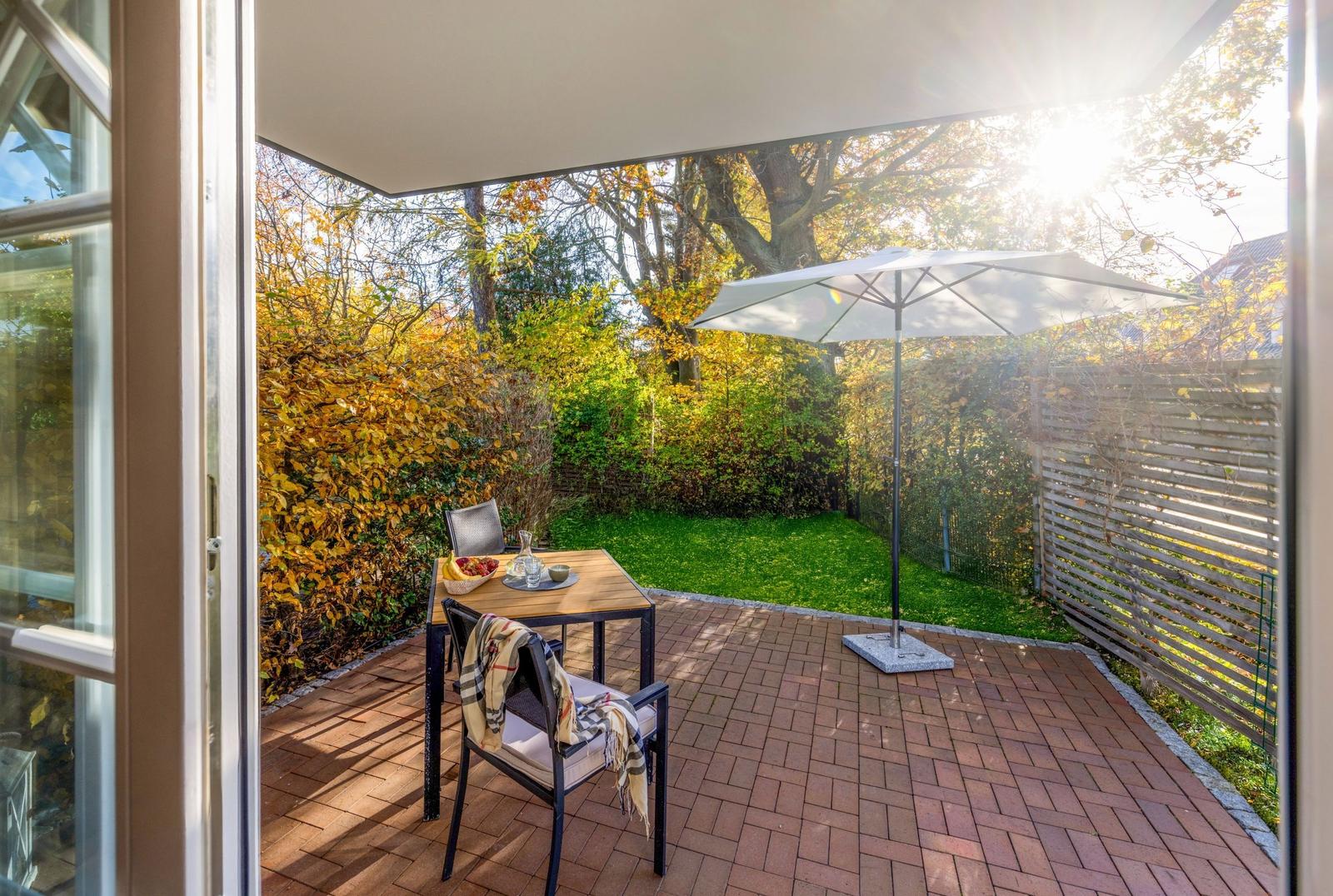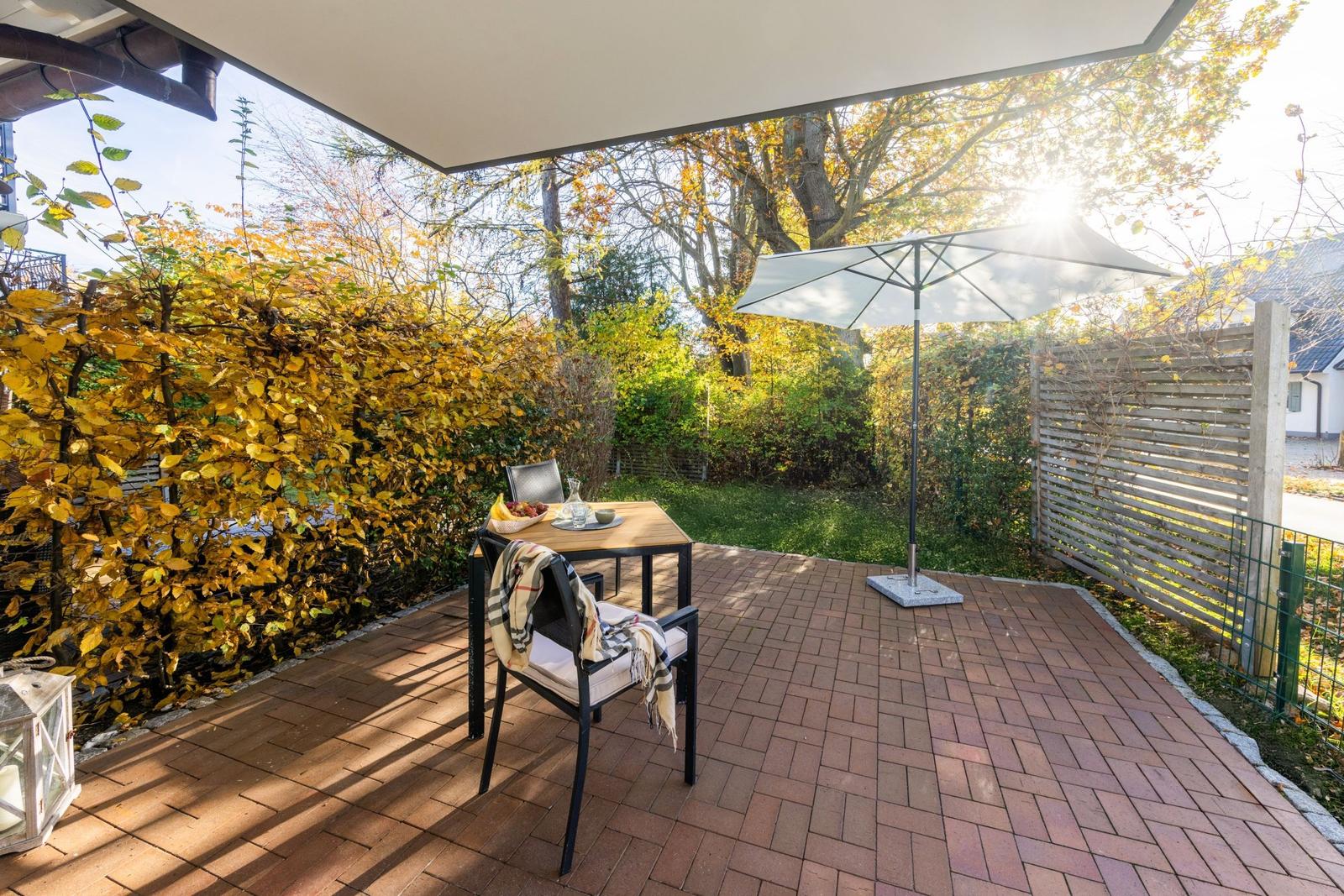 Der Außenbereich der Ferienwohnung „Whg. Dynamique“ lädt zur Entspannung ein. Eine überdachte Terrasse bietet einen schönen Blick auf den gepflegten Garten, ausgestattet mit Gartenmöbeln, Sonnenliegen und einem Sonnenschirm, die perfekte Voraussetzungen für erholsame Stunden im Freien schaffen. Gäste haben die Möglichkeit, den angrenzenden Garten zu nutzen, um nach Aktivitäten in der Umgebung zu relaxen. Für das sichere Abstellen von Fahrzeugen steht ein eigener Parkplatz direkt am Haus zur Verfügung, ergänzt durch eine Tiefgarage mit einem abschließbaren Fahrradraum und Lademöglichkeiten für E-Bikes. Die zentrale Lage ermöglicht einen schnellen Zugang zu vielfältigen Freizeit- und Einkaufsmöglichkeiten, und der feinsandige Ostseestrand ist nur 750 Meter entfernt. Die Wohnung ist der ideale Rückzugsort für bis zu drei Personen, um die Schönheiten von Zingst vollends zu genießen.