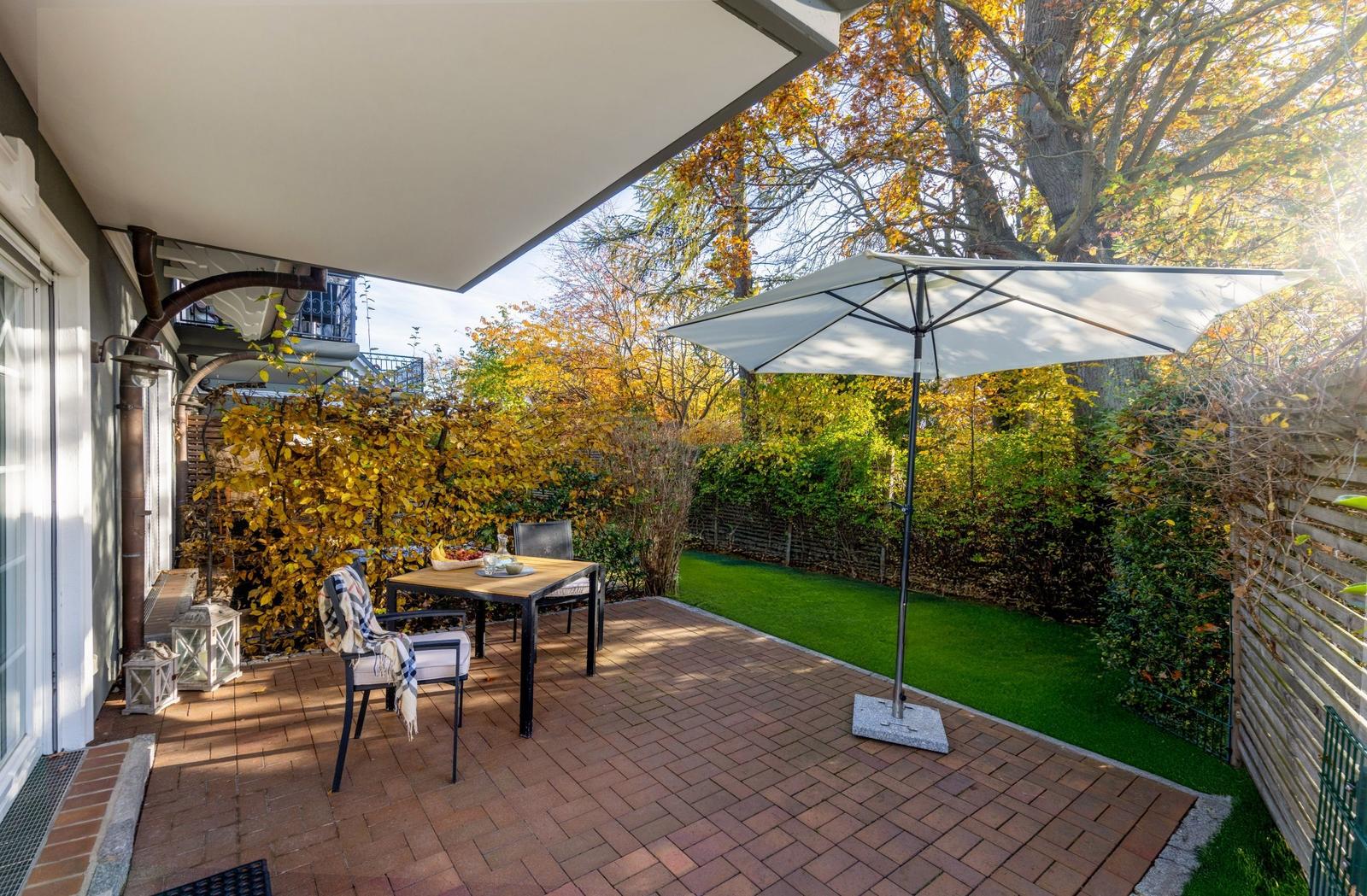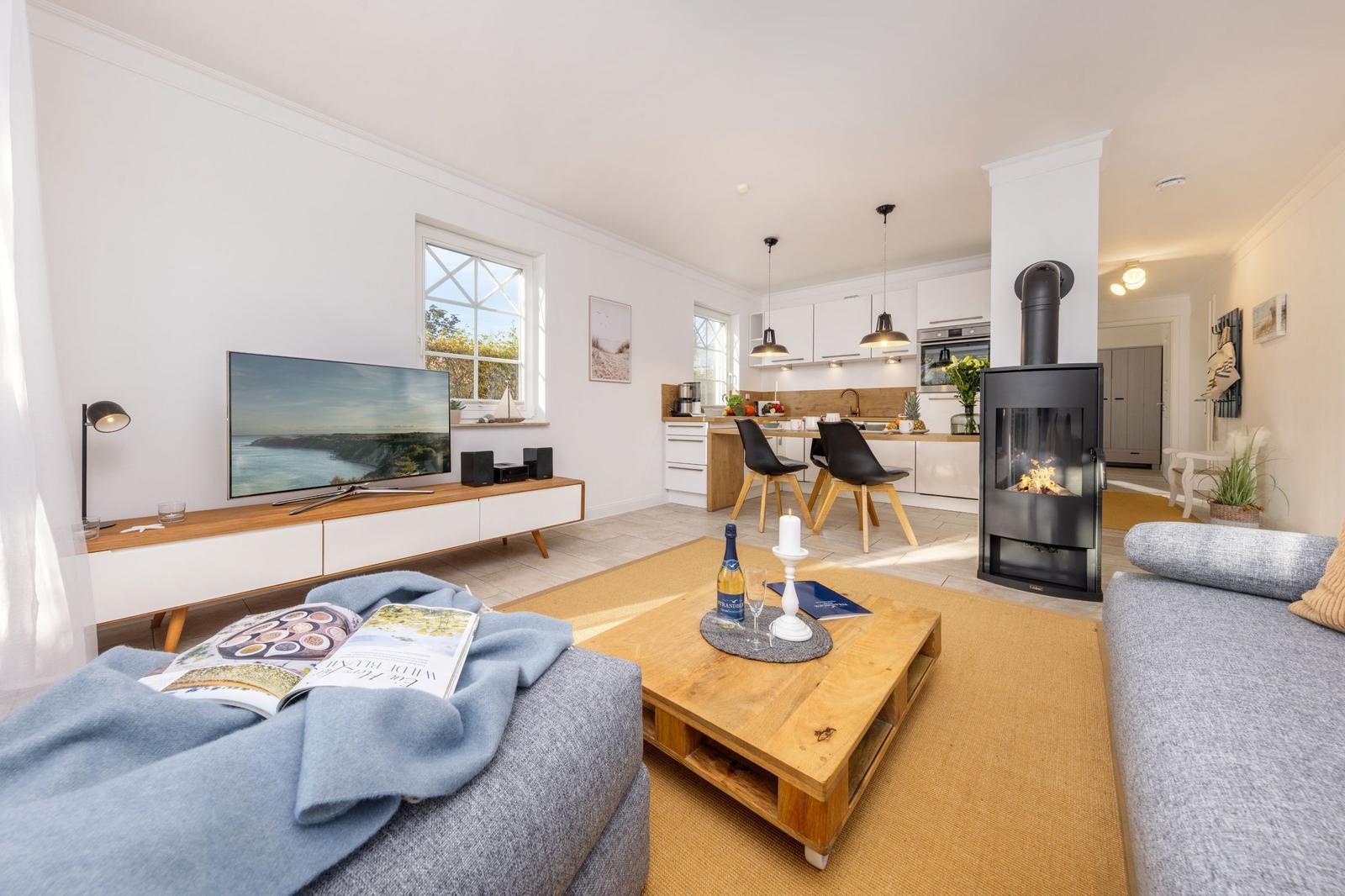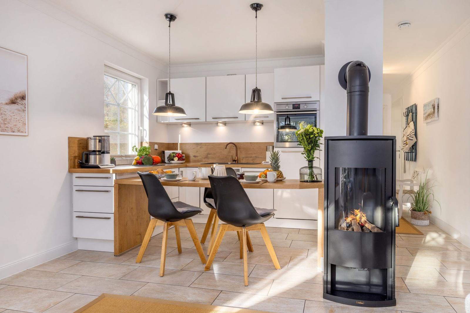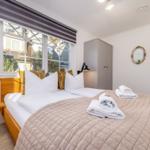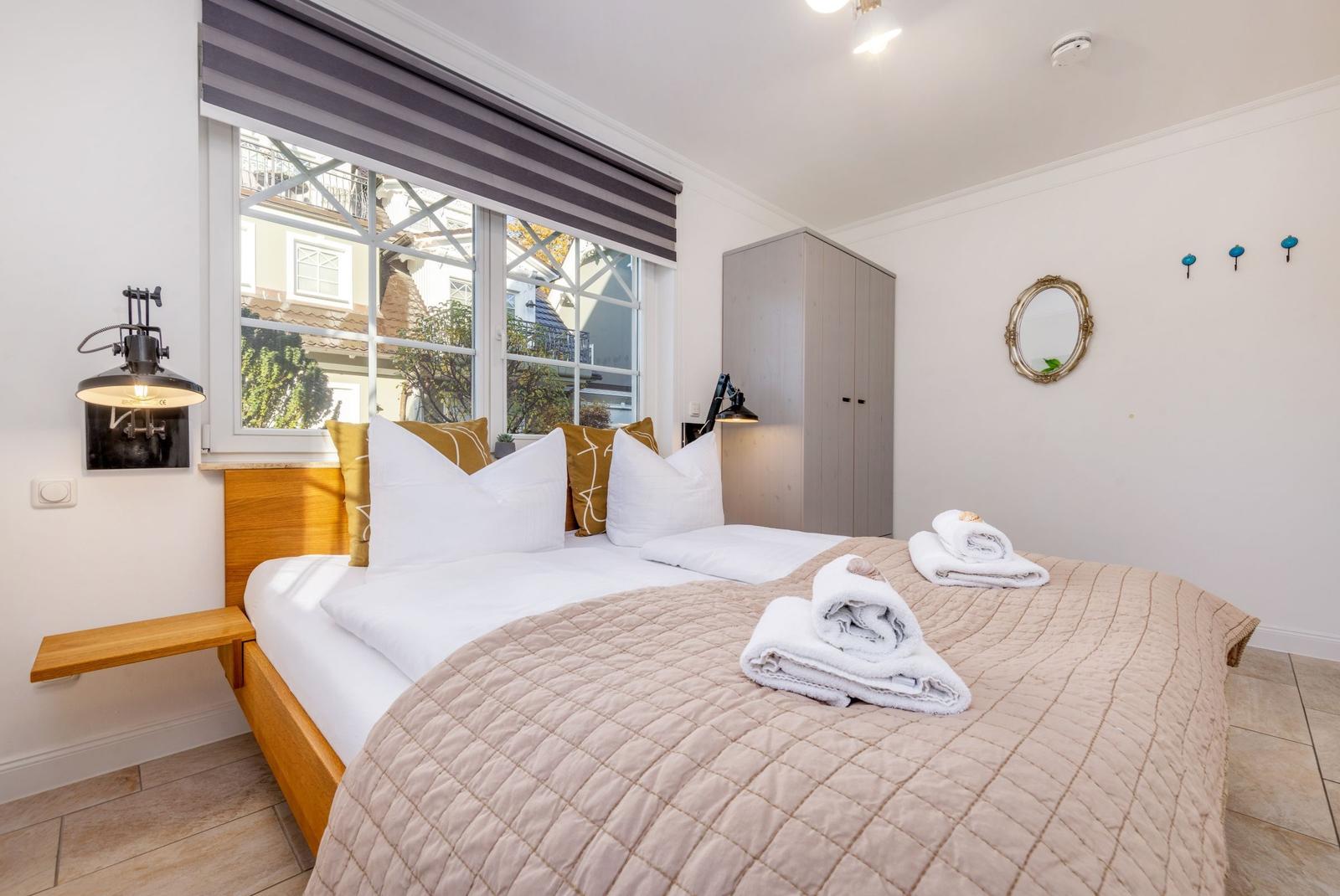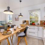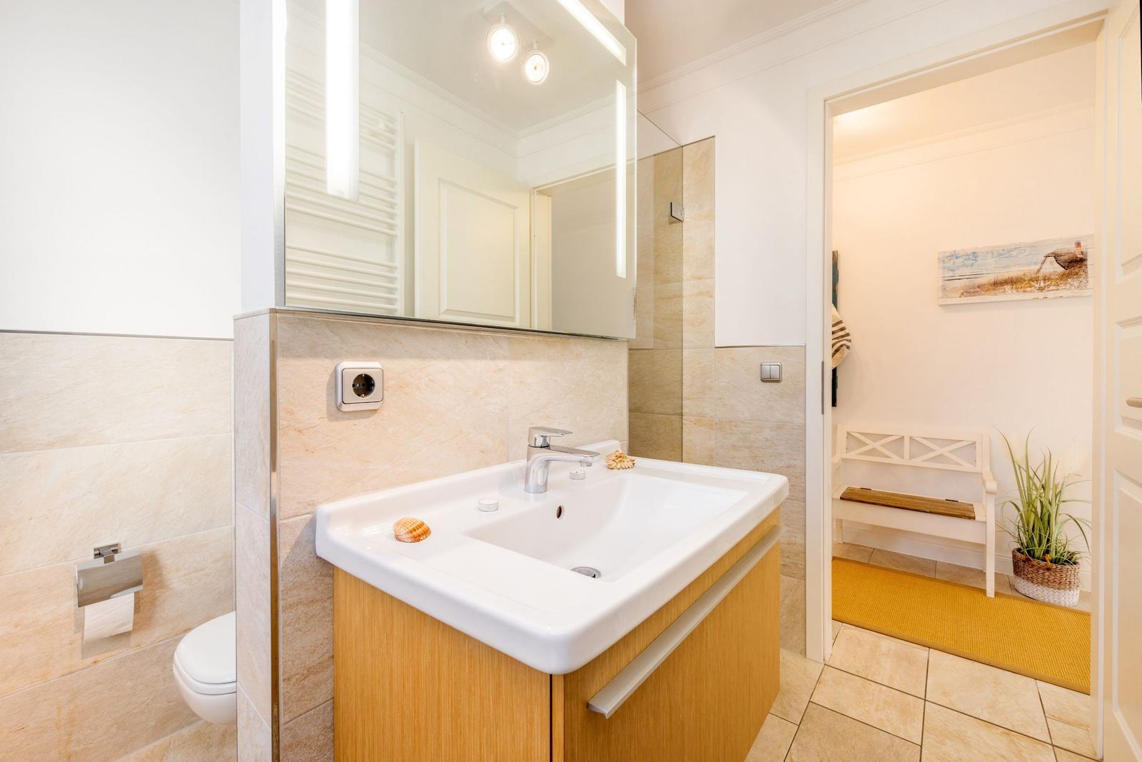 Der Außenbereich der Ferienwohnung „Whg. Dynamique“ lädt zur Entspannung ein. Eine überdachte Terrasse bietet einen schönen Blick auf den gepflegten Garten, ausgestattet mit Gartenmöbeln, Sonnenliegen und einem Sonnenschirm, die perfekte Voraussetzungen für erholsame Stunden im Freien schaffen. Gäste haben die Möglichkeit, den angrenzenden Garten zu nutzen, um nach Aktivitäten in der Umgebung zu relaxen. Für das sichere Abstellen von Fahrzeugen steht ein eigener Parkplatz direkt am Haus zur Verfügung, ergänzt durch eine Tiefgarage mit einem abschließbaren Fahrradraum und Lademöglichkeiten für E-Bikes. Die zentrale Lage ermöglicht einen schnellen Zugang zu vielfältigen Freizeit- und Einkaufsmöglichkeiten, und der feinsandige Ostseestrand ist nur 750 Meter entfernt. Die Wohnung ist der ideale Rückzugsort für bis zu drei Personen, um die Schönheiten von Zingst vollends zu genießen.