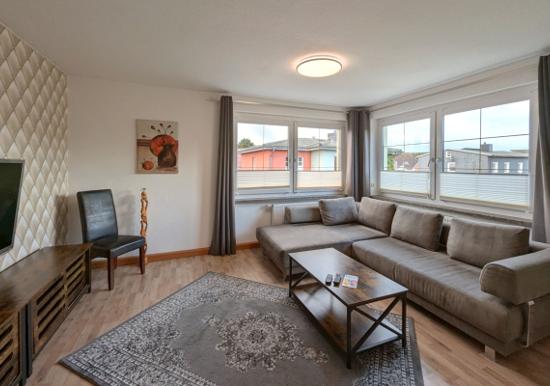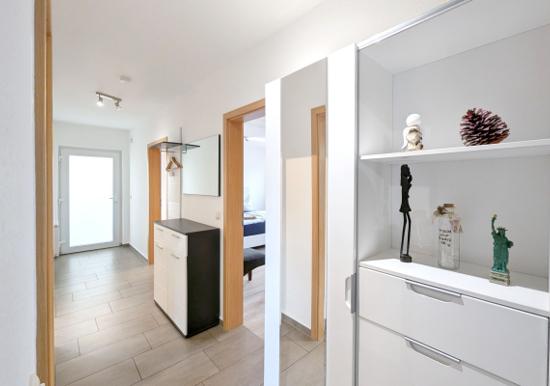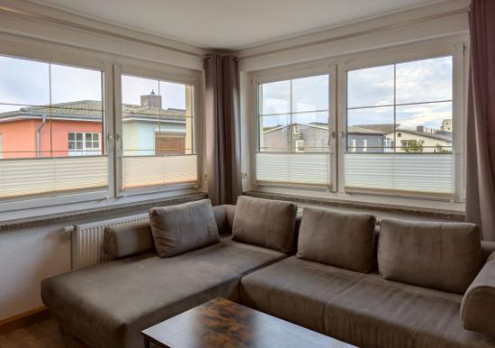 Diese lichtdurchflutete Ferienwohnung bietet eine durchdachte Raumaufteilung und eine hochwertige Ausstattung für einen unvergesslichen Aufenthalt. Sie verfügt über zwei Schlafzimmer mit jeweils einem Doppelbett sowie ein Wohnschlafzimmer mit einer komfortablen Schlafcouch. Eine separate, voll ausgestattete Küche lädt zum Kochen ein und ist mit einem Geschirrspüler, Elektro-/Gasherd, Backofen, Mikrowelle, Kühlschrank, Gefriermöglichkeit, Kaffeemaschine, Toaster und Wasserkocher ausgestattet. Ein großzügiger Esstisch ermöglicht geselliges Beisammensein.