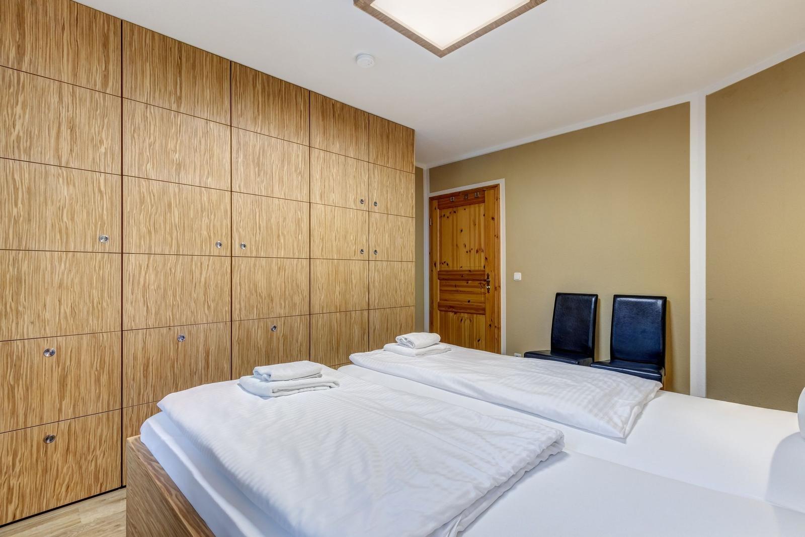 Mit einem Schlafzimmer, das ein gemütliches Doppelbett beherbergt, und zwei Badezimmern, darunter eine barrierefreie Dusche, ist diese Wohnung ideal für Ruhe und Komfort. Zusätzliche Annehmlichkeiten wie WLAN, Haartrockner, Bügeleisen und Staubsauger runden das Angebot ab. Ein Parkplatz steht ebenfalls zur Verfügung. Die Ferienwohnung bietet somit alles, was für einen angenehmen Aufenthalt notwendig ist.