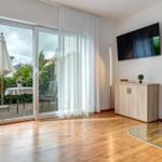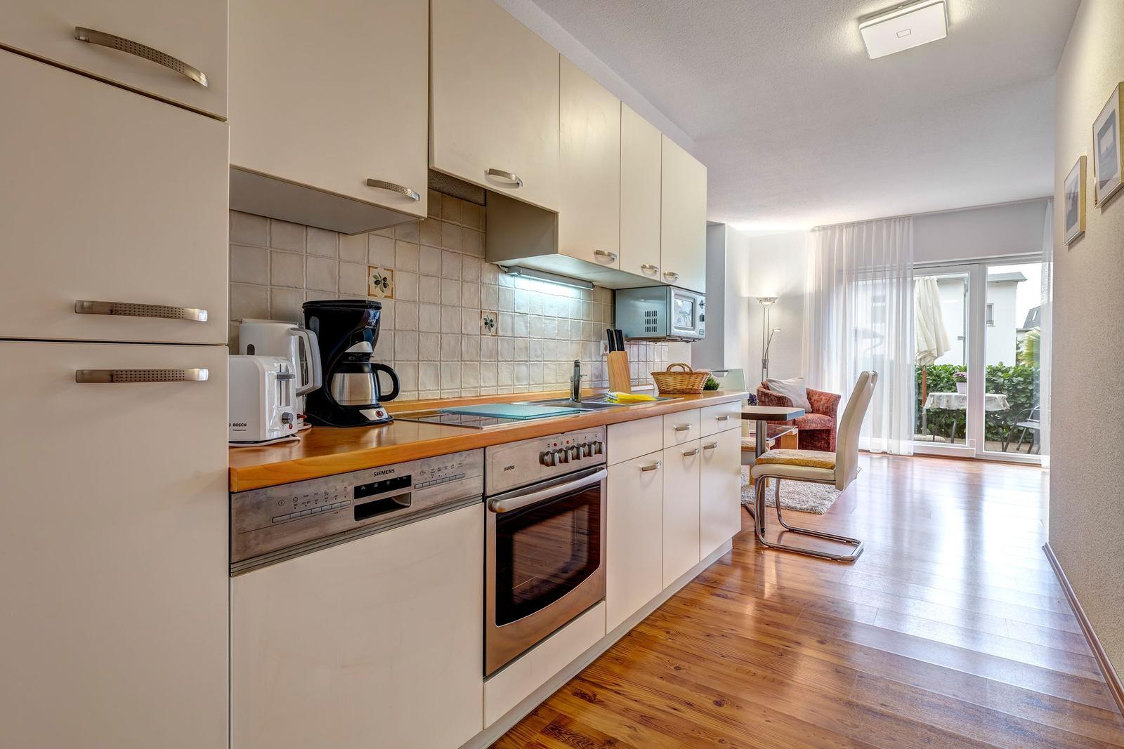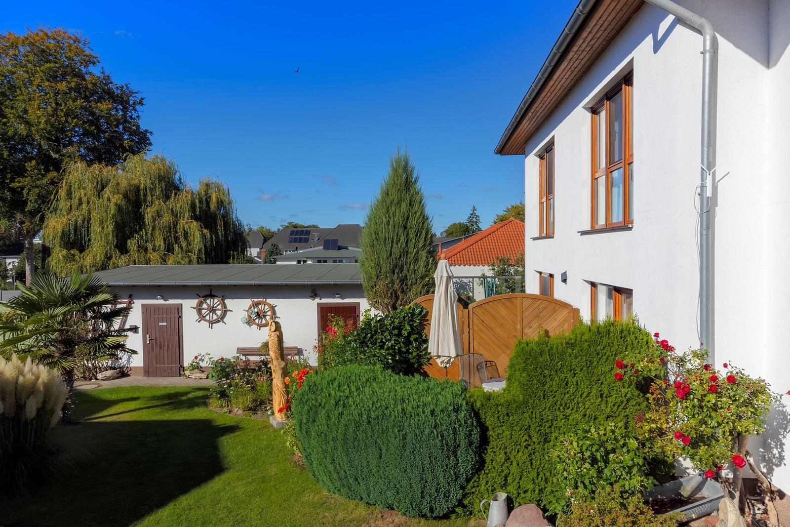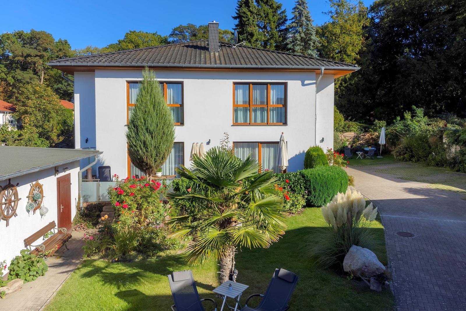 Die Ferienwohnung in der Villa Stranddistel im Ostseebad Zinnowitz bietet einen ansprechenden Außenbereich, der eine großzügige Terrasse umfasst. Diese lädt dazu ein, die frische Ostseeluft zu genießen und herrliche Sonnenuntergänge zu erleben. Die Terrasse ist exklusiv für die Gäste der Wohnung nutzbar, was eine private Atmosphäre schafft. Zudem wird der Außenbereich durch üppige Grünflächen umrahmt, die zu entspannten Momenten im Freien einladen. Bei der Ausstattung der Wohnung ist eine behindertengerechte Gestaltung zu berücksichtigen, was den Aufenthalt für alle Gäste komfortabel macht. Ob ein entspannendes Frühstück im Freien oder ein gemütlicher Abend unter dem Sternenhimmel – der Außenbereich der Villa Stranddistel bietet vielfältige Möglichkeiten zur Erholung und zum Genuss der Natur. Ideal für Paare oder kleine Familien, die sowohl Komfort als auch eine idyllische Umgebung suchen.