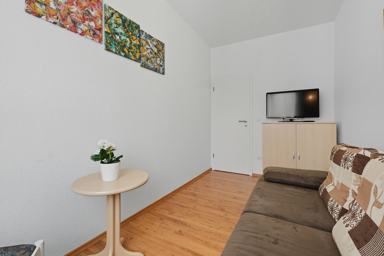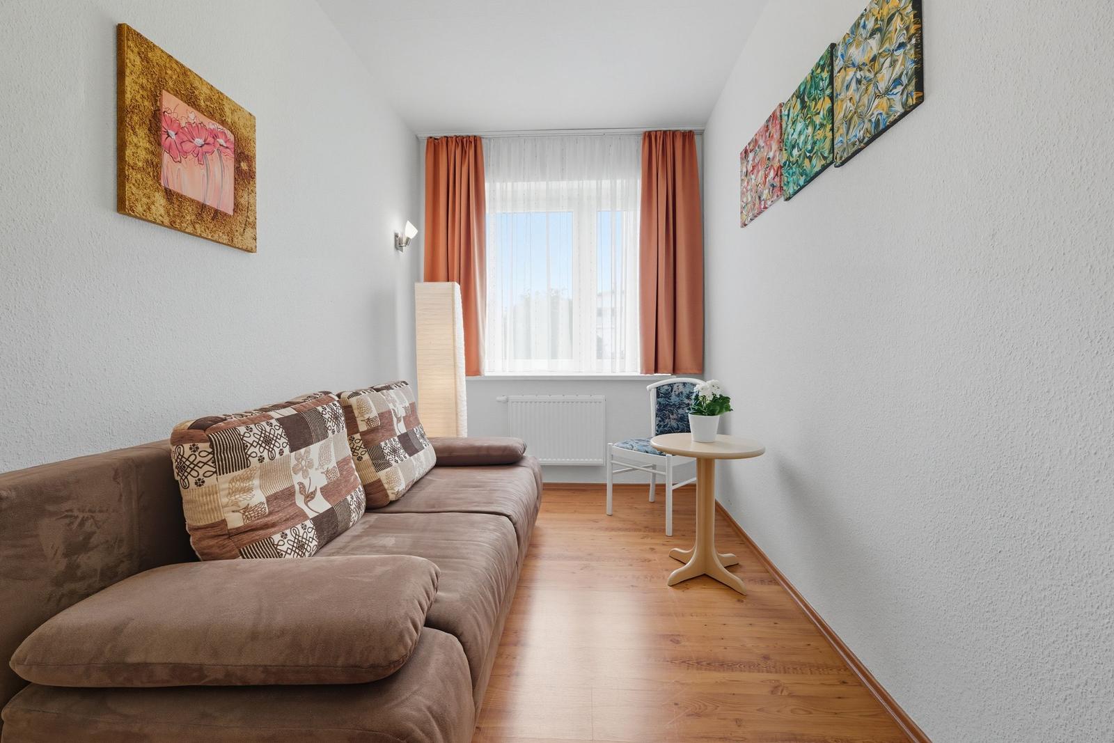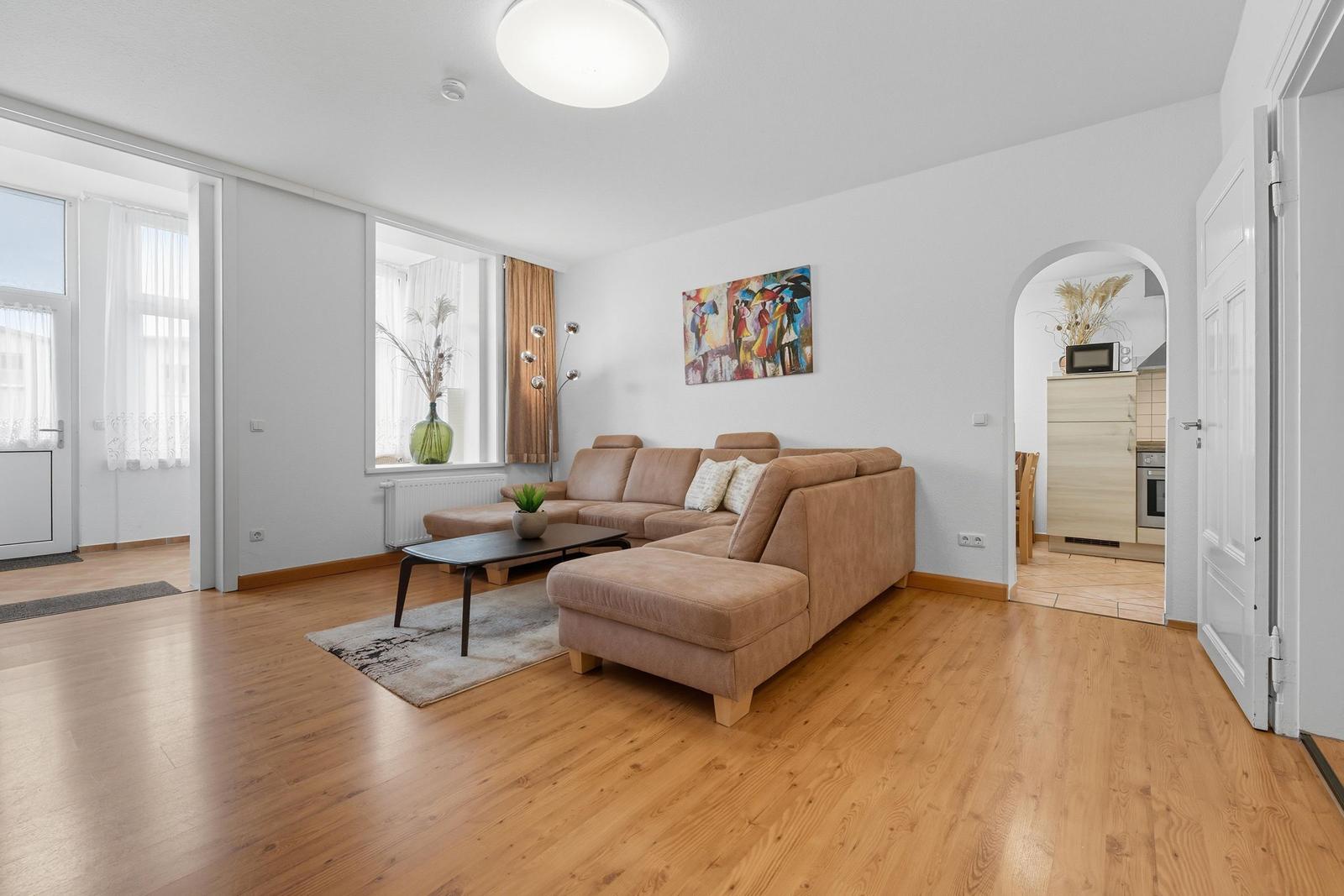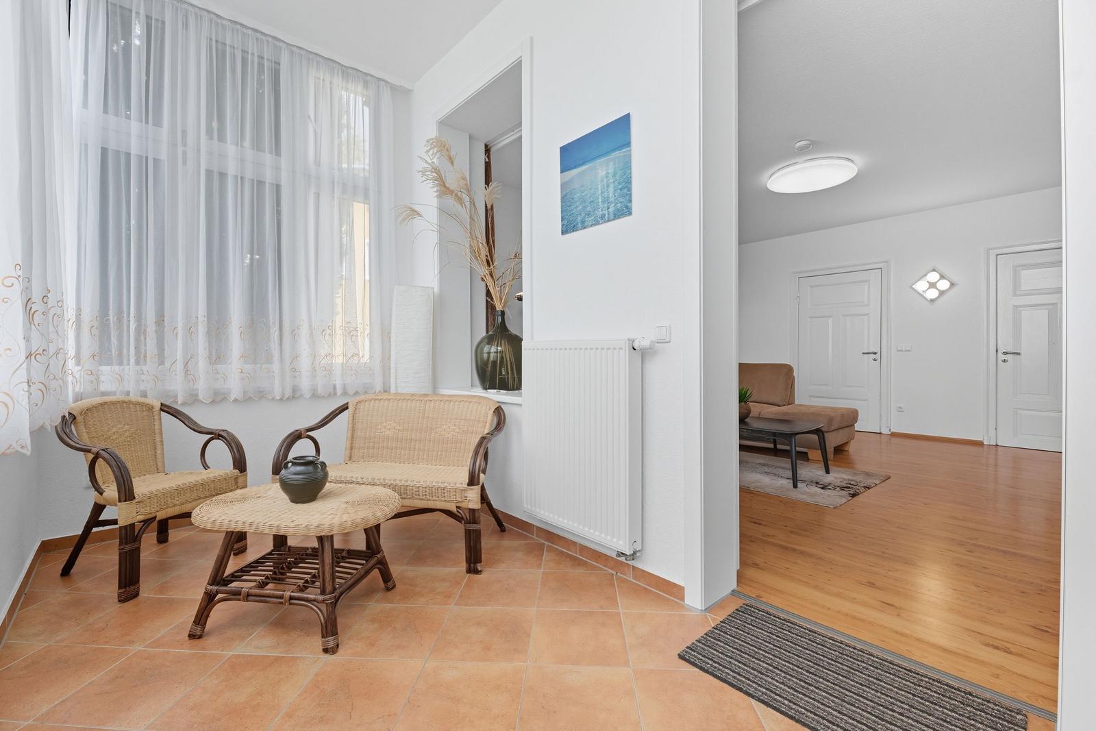 Die Familiensuite im Haus Gudrun in Zinnowitz überzeugt durch ihre zentrale Lage und historische Atmosphäre. Umgeben von der wunderschönen Natur der Ostseeinsel Usedom, befindet sich die Unterkunft nur 800 Meter vom Strand entfernt, ideal für entspannte Tage am Meer. In der Nähe finden sich zahlreiche Attraktionen, wie die beliebte Seebrücke und den Zinnowitzer Strand, die bequem zu Fuß erreichbar sind. Für Ausflüge bieten sich die nahegelegenen Orte wie Heringsdorf (ca. 10 km) und Ahlbeck (ca. 12 km) an, die mit charmanten Strandpromenaden und interessanten Geschäften locken. Die Anreise zur Familiensuite ist unkompliziert, da ein Parkplatz direkt zur Verfügung steht. Ideal für Familien, die den Komfort einer zentralen Lage und die Schönheit der Umgebung schätzen.