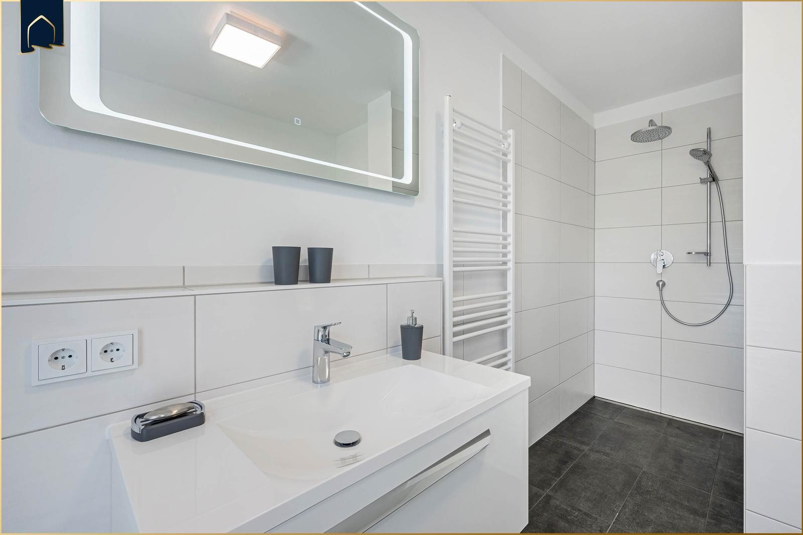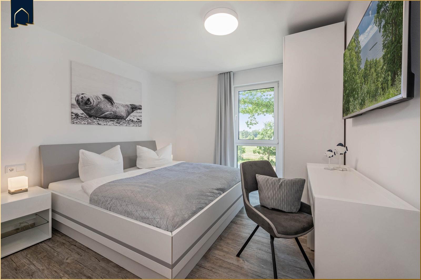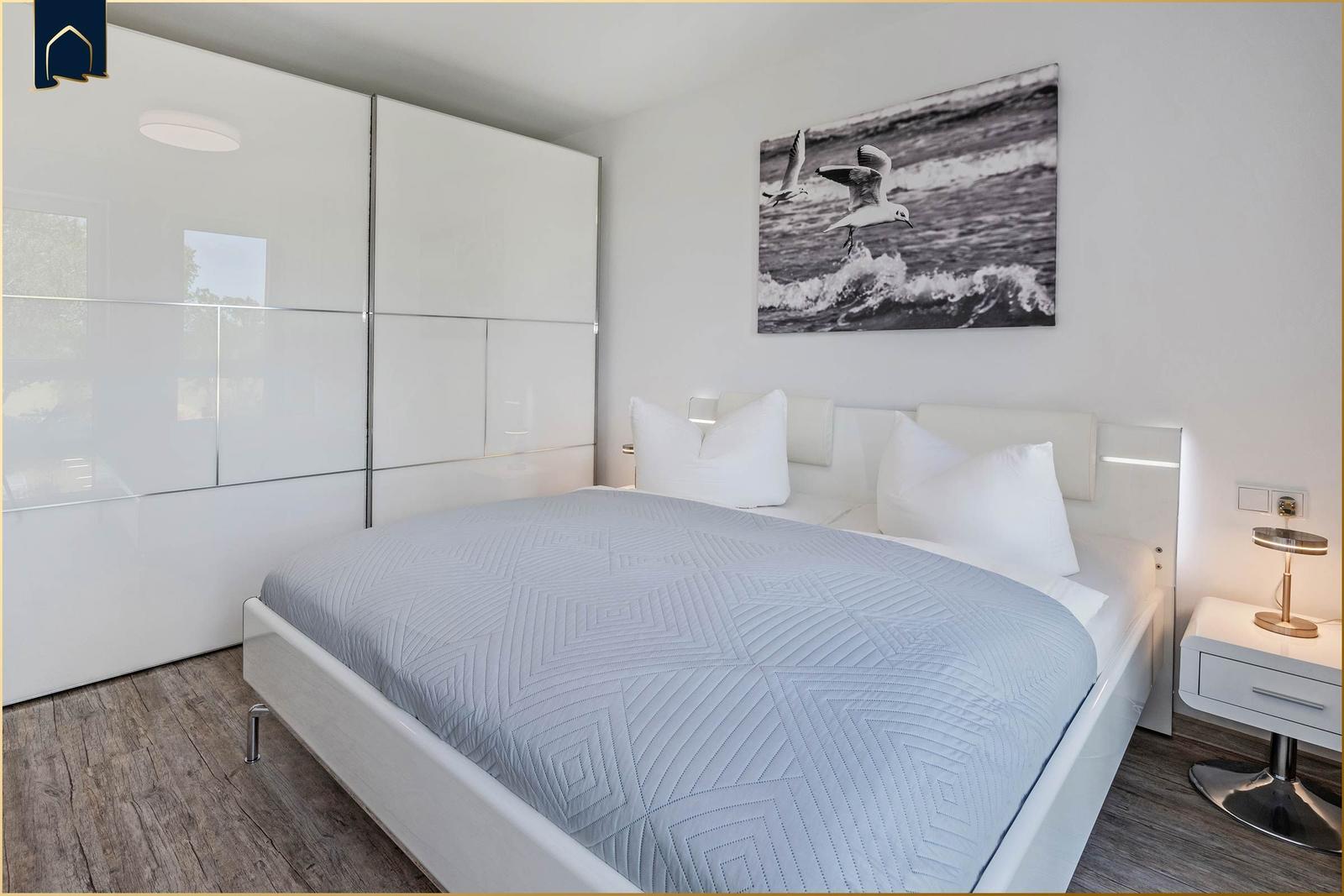 Die Ferienwohnung bietet eine ideale Kombination aus Komfort und Funktionalität. Sie verfügt über zwei geschmackvoll eingerichtete Schlafzimmer mit jeweils einem Doppelbett sowie ein einladendes Wohnschlafzimmer mit einer Schlafcouch. Zwei moderne Badezimmer, eines mit bodengleicher Dusche, garantieren eine entspannte Atmosphäre.