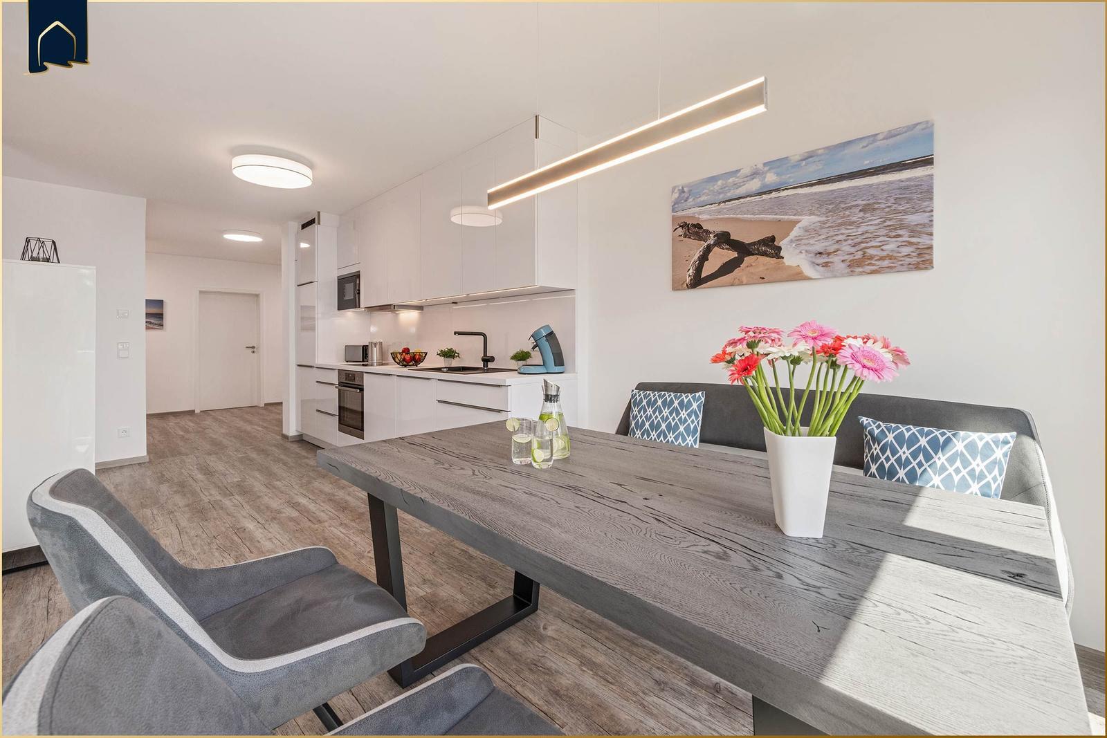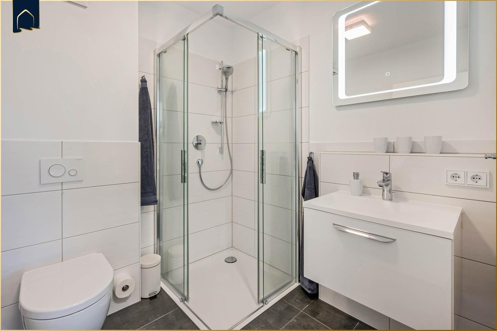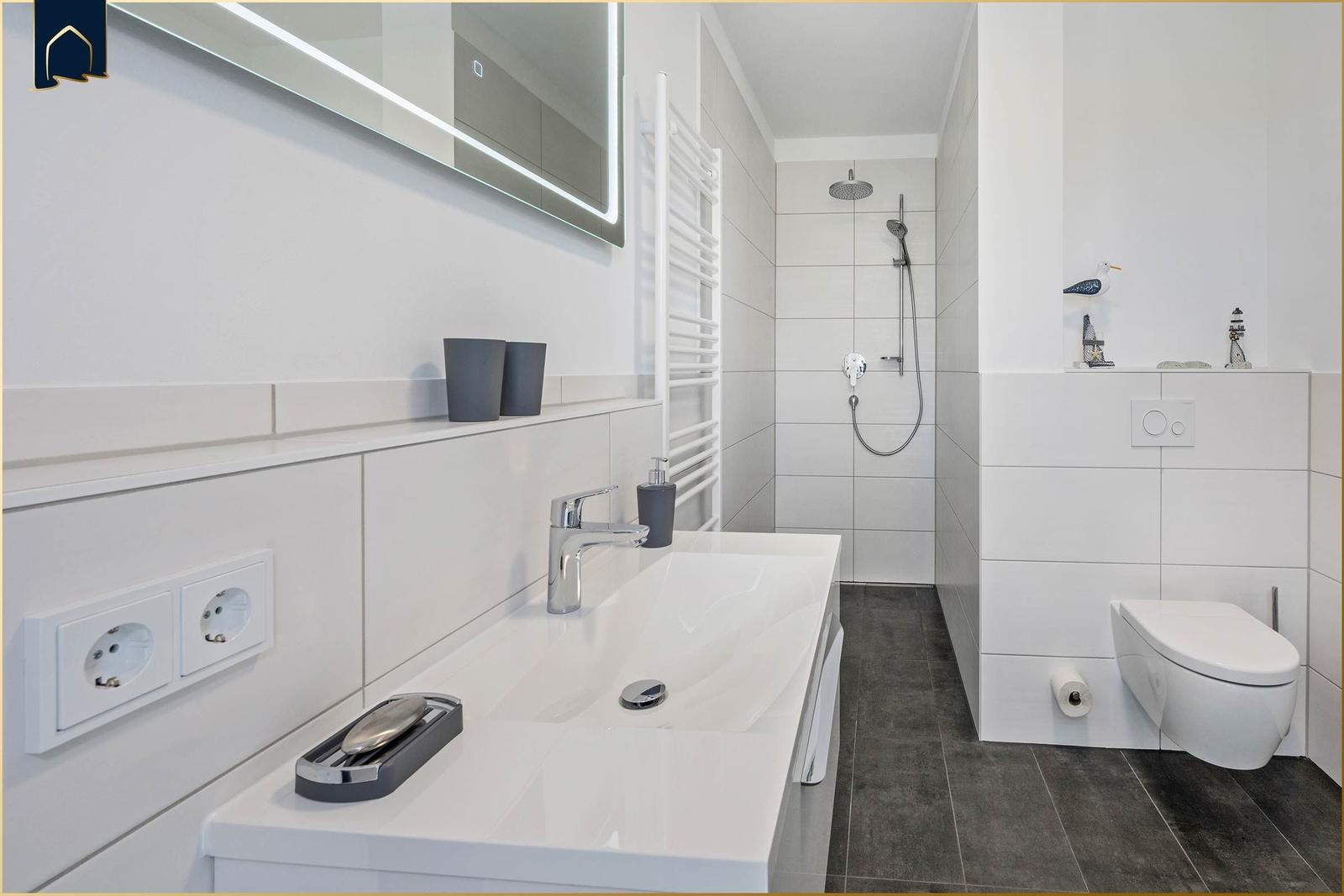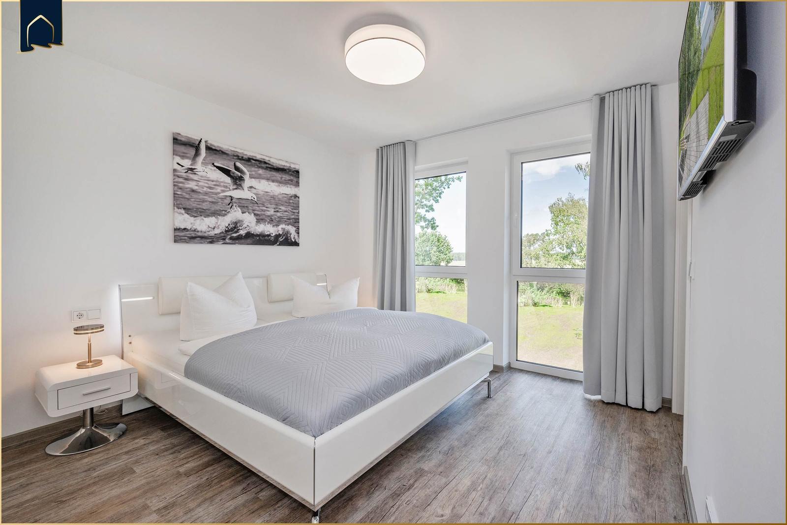 Die Ferienwohnung bietet eine ideale Kombination aus Komfort und Funktionalität. Sie verfügt über zwei geschmackvoll eingerichtete Schlafzimmer mit jeweils einem Doppelbett sowie ein einladendes Wohnschlafzimmer mit einer Schlafcouch. Zwei moderne Badezimmer, eines mit bodengleicher Dusche, garantieren eine entspannte Atmosphäre.