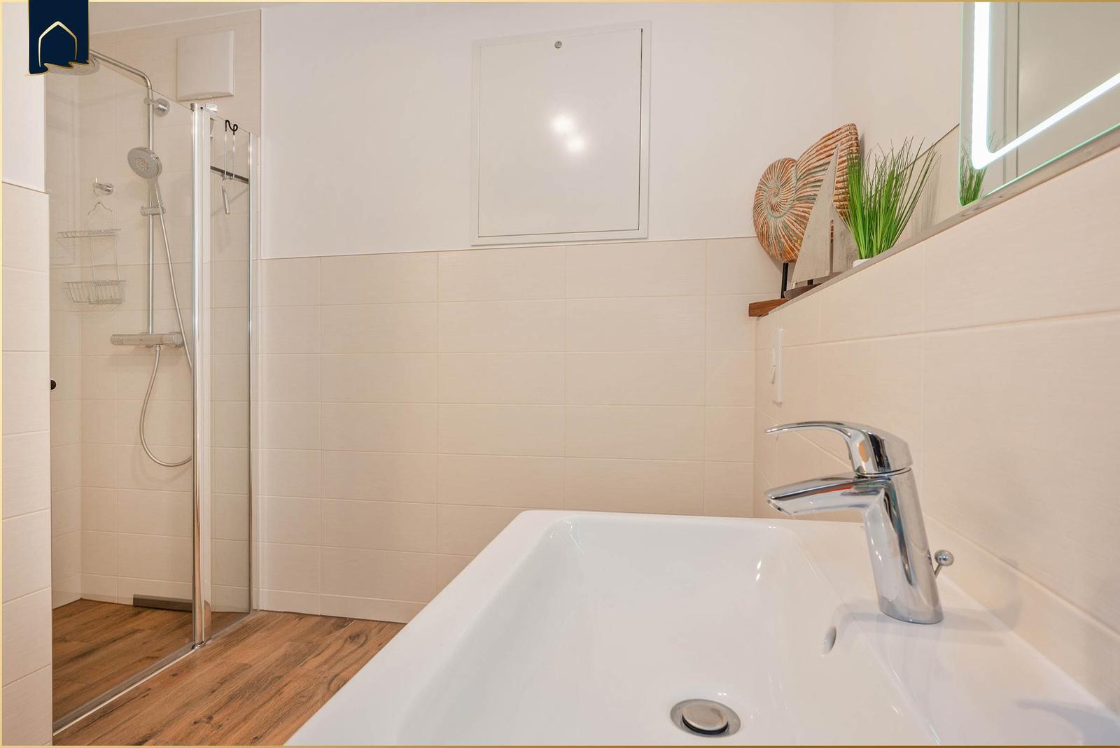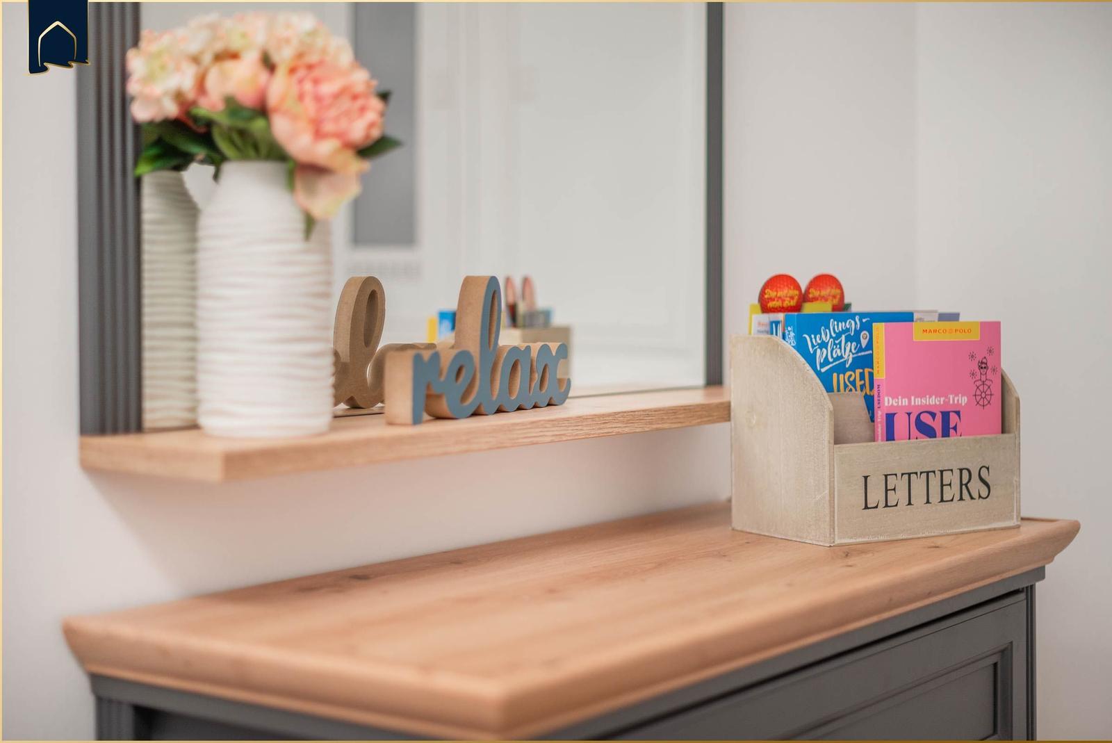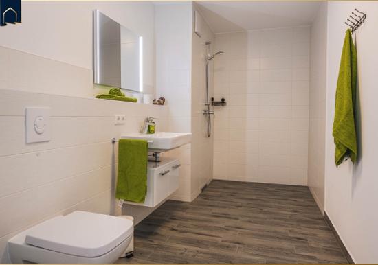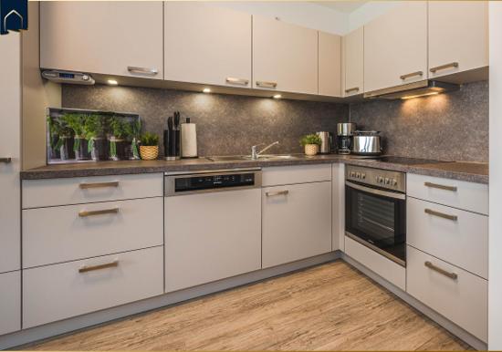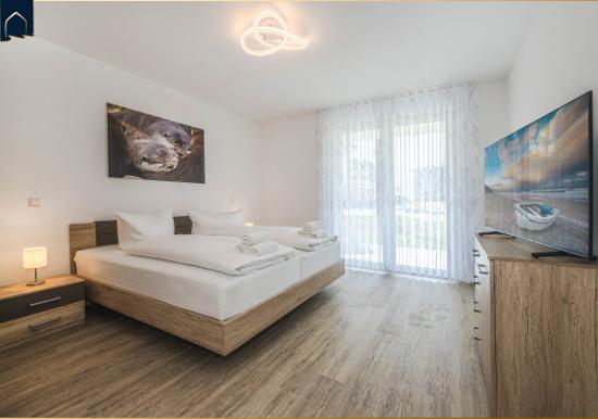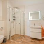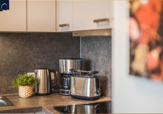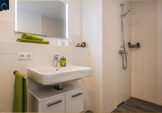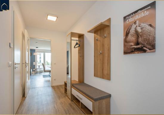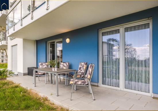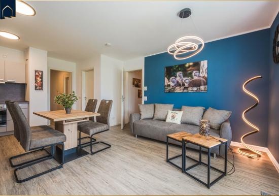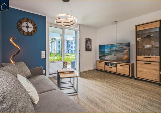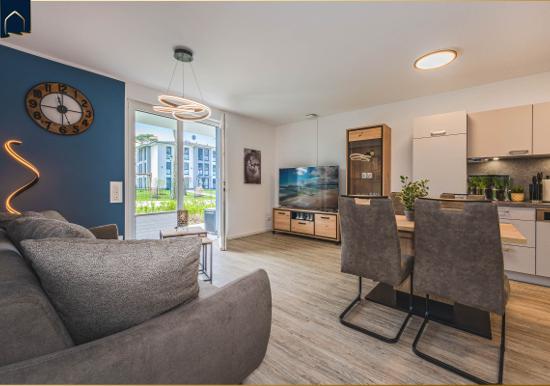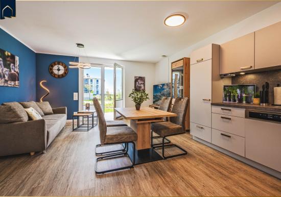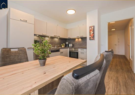 Die Ferienwohnung bietet modernen Komfort und eine hochwertige Ausstattung, die einen erholsamen Aufenthalt garantiert. Mit zwei gemütlichen Schlafzimmern und zwei stilvollen Badezimmern, jeweils ausgestattet mit einer bodengleichen Dusche, ist sie ideal für Paare oder Familien. Die offene Küche lädt zum gemeinsamen Kochen ein und verfügt über einen Elektro-/Gasherd, Backofen, Kühlschrank, Geschirrspüler sowie eine Mikrowelle. WLAN sorgt für schnellen Internetzugang. Die Wohnung ist barrierefrei und allergikergeeignet, ausgestattet mit Fußbodenheizung, Haartrockner und Wäschetrockner. Der großzügige Wohnbereich bietet ein einladendes Sofa, einen Esstisch und Unterhaltung mit TV, HiFi-Anlage und einer Spielekonsole. Ein Lift erleichtert den Zugang, und der Parkplatz vor der Tür sorgt für Komfort. Tägliche Annehmlichkeiten wie Geschirr, Besteck und eine Espressomaschine runden das Angebot ab. Gemeinschaftliche Einrichtungen, inklusive eines Fitnessraums, stehen ebenfalls zur Verfügung.
