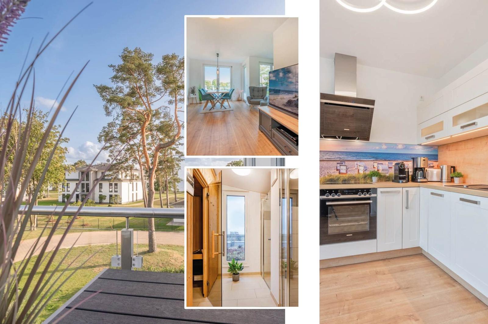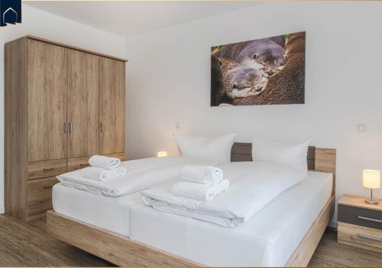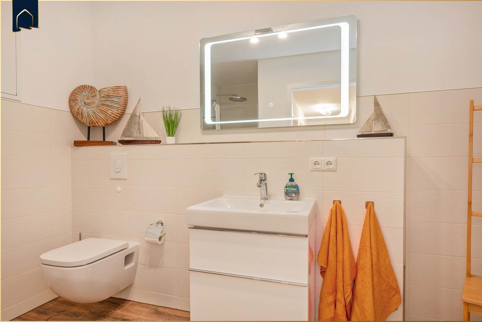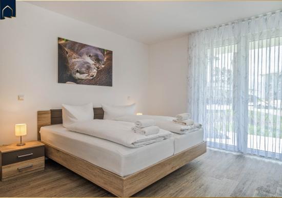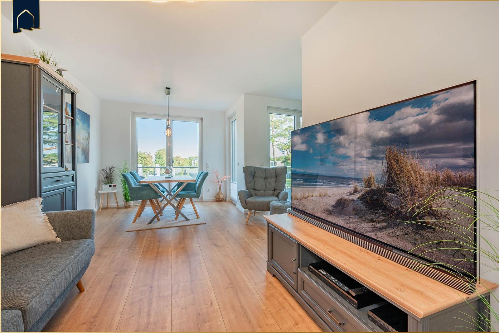 Die Ferienwohnung bietet modernen Komfort und eine hochwertige Ausstattung, die einen erholsamen Aufenthalt garantiert. Mit zwei gemütlichen Schlafzimmern und zwei stilvollen Badezimmern, jeweils ausgestattet mit einer bodengleichen Dusche, ist sie ideal für Paare oder Familien. Die offene Küche lädt zum gemeinsamen Kochen ein und verfügt über einen Elektro-/Gasherd, Backofen, Kühlschrank, Geschirrspüler sowie eine Mikrowelle. WLAN sorgt für schnellen Internetzugang. Die Wohnung ist barrierefrei und allergikergeeignet, ausgestattet mit Fußbodenheizung, Haartrockner und Wäschetrockner. Der großzügige Wohnbereich bietet ein einladendes Sofa, einen Esstisch und Unterhaltung mit TV, HiFi-Anlage und einer Spielekonsole. Ein Lift erleichtert den Zugang, und der Parkplatz vor der Tür sorgt für Komfort. Tägliche Annehmlichkeiten wie Geschirr, Besteck und eine Espressomaschine runden das Angebot ab. Gemeinschaftliche Einrichtungen, inklusive eines Fitnessraums, stehen ebenfalls zur Verfügung.
