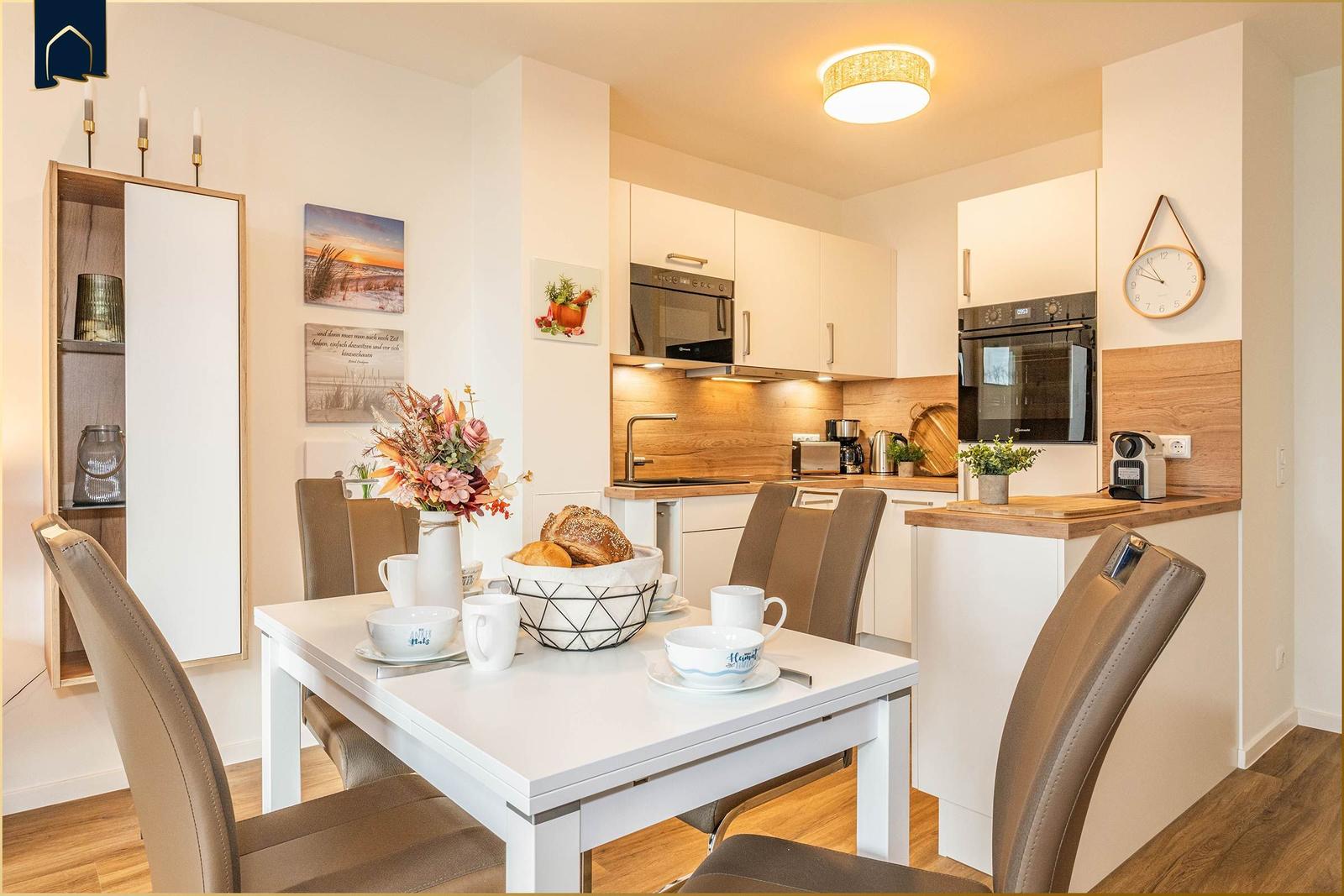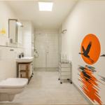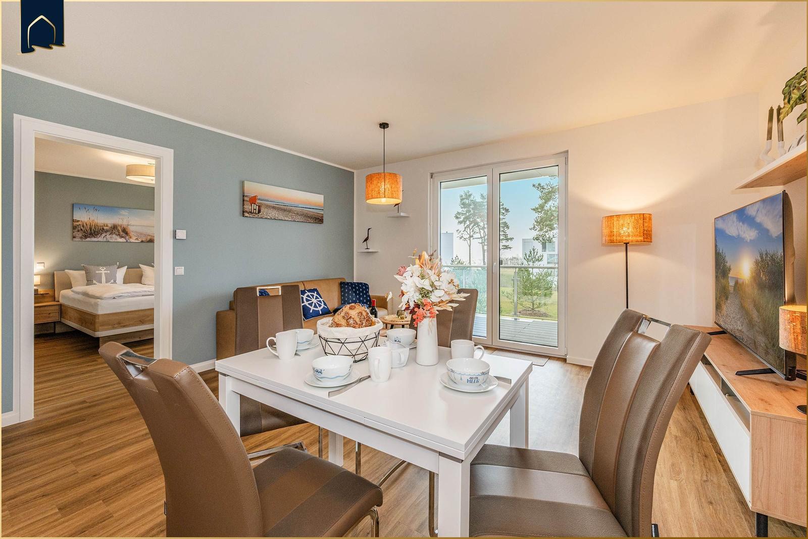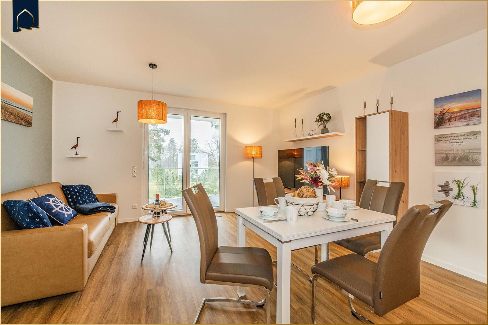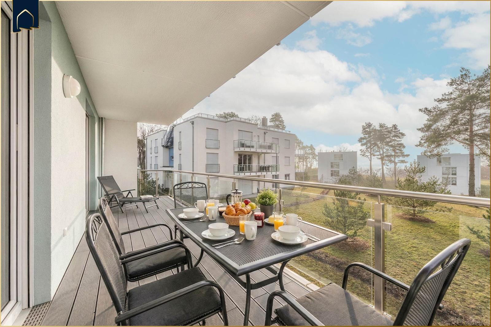 Die Ferienwohnung "Der Kranich" in Zirchow auf Usedom bietet einen hochwertigen Außenbereich, der die Erholung der Gäste unterstützt. Ein eigener Balkon lädt dazu ein, die frische Luft und die Ruhe der Umgebung zu genießen. Zudem stehen den Gästen interessante Gemeinschaftsbereiche zur Verfügung: Ein stilvoll gestalteter Sauna- und Ruhebereich im Dachgeschoss sorgt für Entspannung, während ein gemeinschaftlich nutzbarer Fitness- und Freizeitraum im Keller Aktivität und Spielspaß ermöglicht – ausgestattet mit Kicker, Darts und weiteren Freizeitmöglichkeiten. Die ruhige Lage in Zirchow, umgeben von Natur, ergänzt das Angebot. Die Kombination aus privatem und gemeinschaftlichem Außenbereich macht die Ferienwohnung "Der Kranich" zu einem idealen Rückzugsort für jeden, der eine entspannte Zeit auf der Ostseeinsel Usedom verbringen möchte.