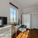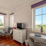 Für Gäste, die während des Aufenthalts arbeiten müssen, steht ein Schreibtisch direkt vor dem Fenster bereit. Der perfekte Arbeitsplatz mit Ausblick!